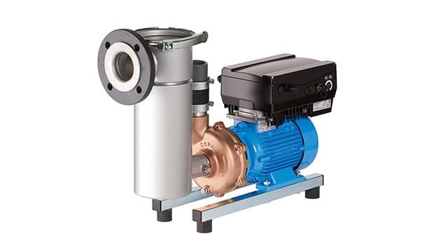 The total cost for the new pumps is less than for the previous version with a separate frequency converter. In addition, expensive wiring with shielded cables between the pump and separate FC is no longer required. Electrical installation costs are lower as a result and the entire system is less susceptible to faults. Long service life is achieved through the use of high quality, heat-resistant film capacitors. The frequency converter is already pre-configured in the factory in order to enable faster startup.