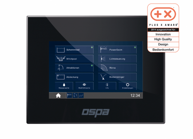 Ospa BlueControl® 5 Web took home a total of 4 awards. Particularly in the areas of functionality and operating convenience, it surpassed other products. It controls and monitors all functions of the swimming pool, the water features as well as lighting and ventilation in an energy efficient manner. The new touch screen, with a modern design, makes operation more intuitive and comfortable than ever before. In addition, all functions can also be easily controlled via smartphone or tablet.