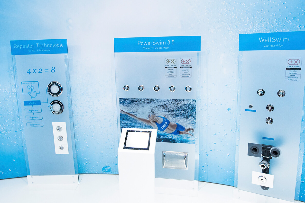 The Ospa team was particularly proud of winning the Plus X-Awards once again. A total of 6 trophies came home in 2018. In addition to the awards for the Ospa PowerSwim 3.5, Ospa BlueControl and Ospa WellSwim products, Ospa was also pleased to receive the sought-after awards "Best Company 2018" and "Most Innovative Company 2018." After the exhibition closed, Michael and Stefan Pauser, CEOs of Ospa Schwimmbadtechnik, also rated interbad 2018 a complete success.