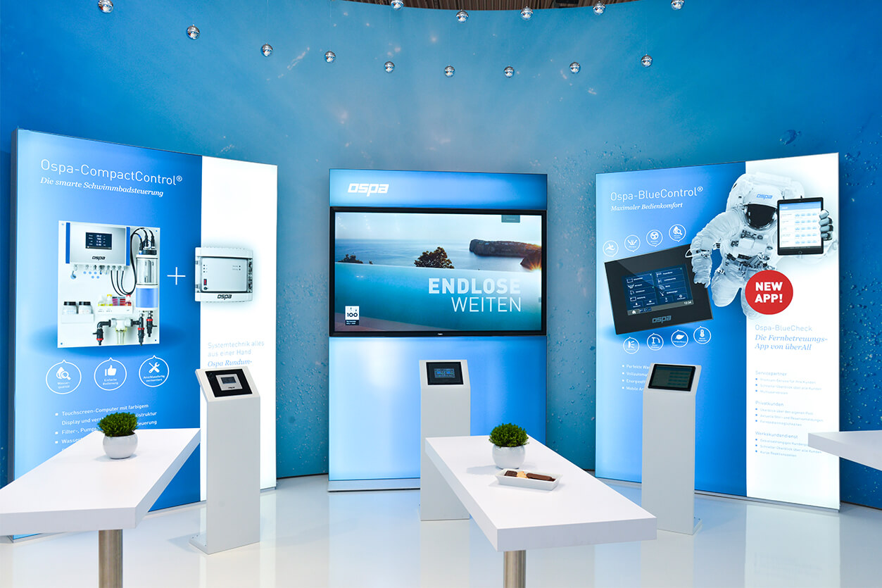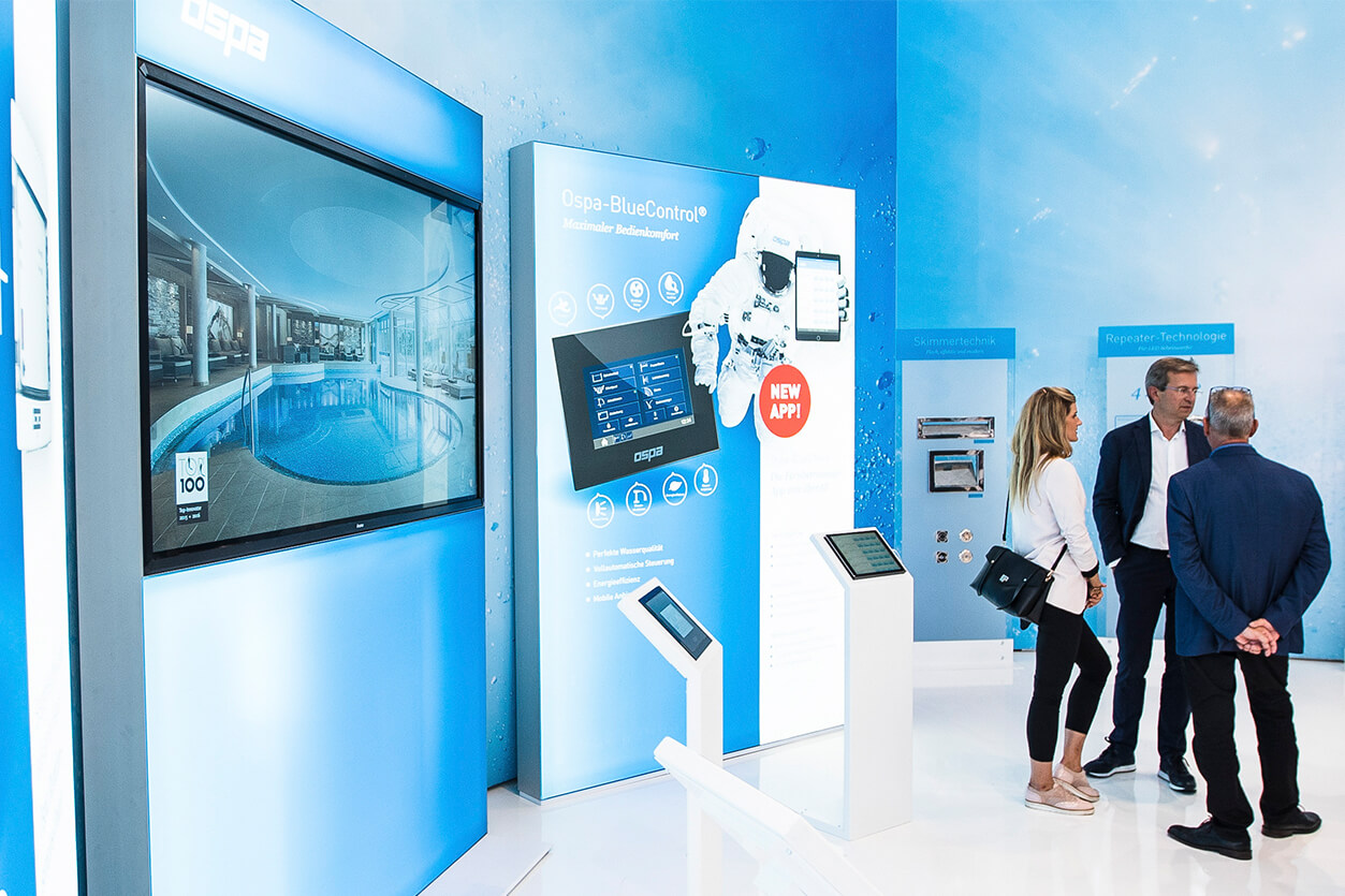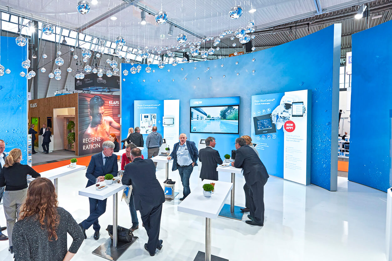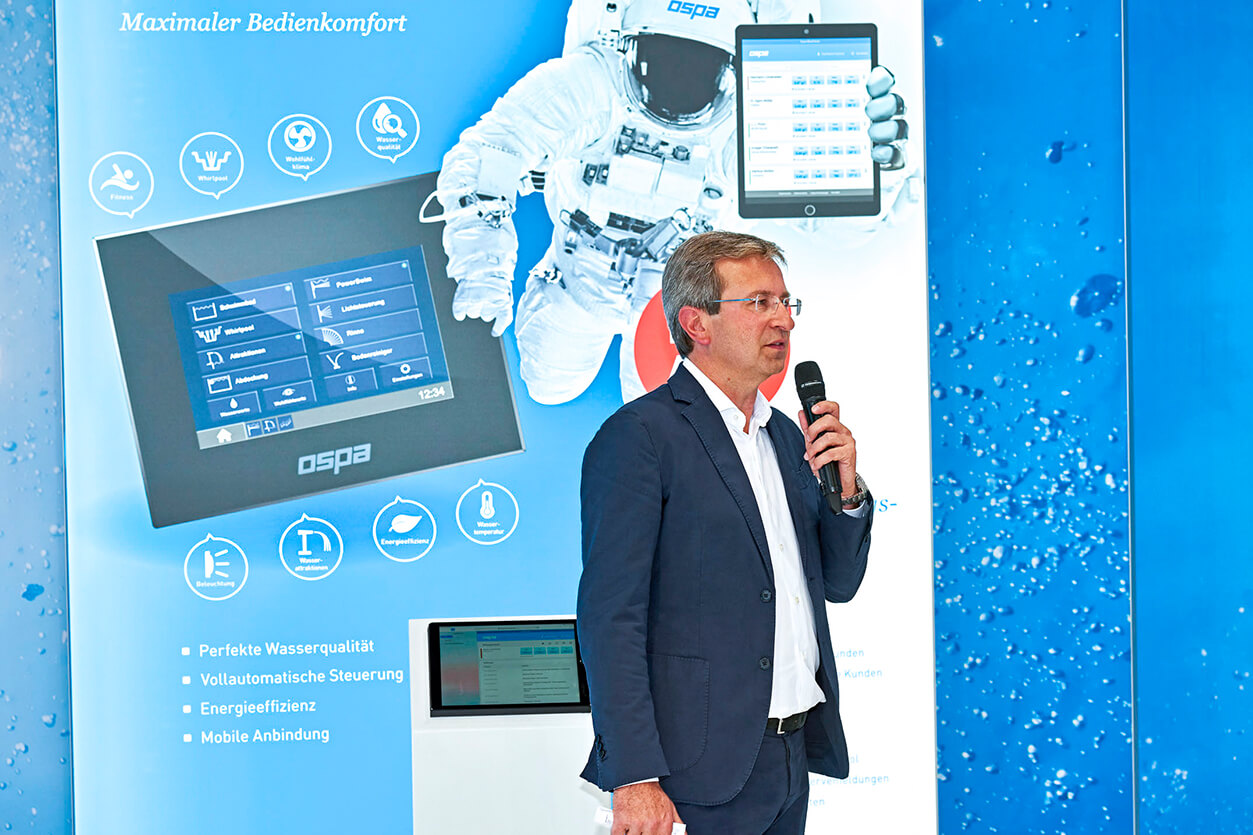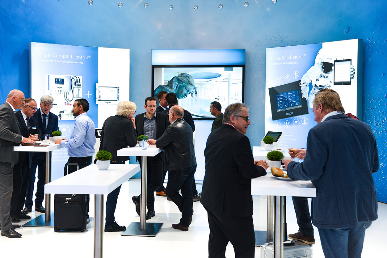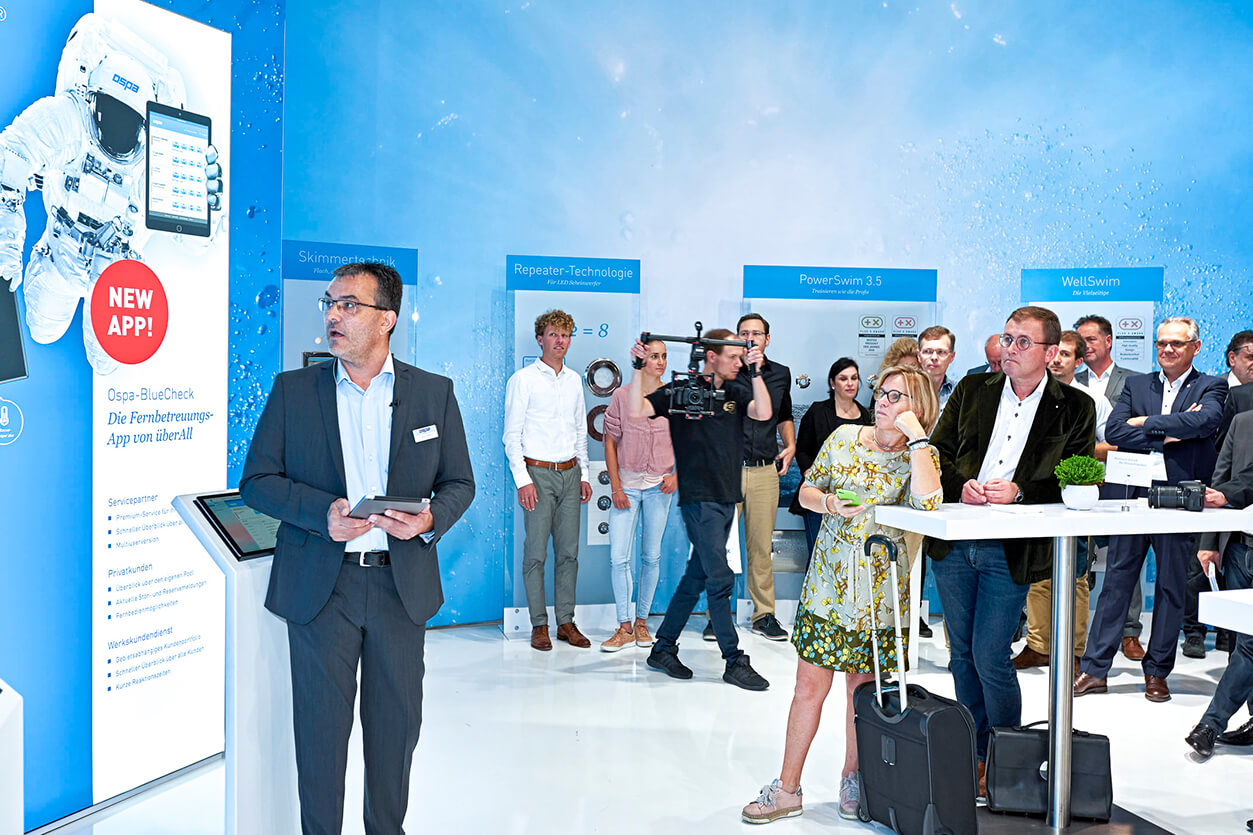 Ospa presented a veritable fireworks display of new products at interbad 2018. A large number of trade show visitors and interested parties showed great interest, often keeping the expert Ospa sales team working at capacity. Under the slogan "Innovation and success," Ospa invited its domestic and foreign partners to an innovation meeting on Wednesday. They used the time to discuss the latest technologies and trends in a comfortable atmosphere. The current Ospa product highlights, "TopSwim" and "BlueCheck," were also topics for discussion, as were the new vacuum filters from Ospa and the new "WP-MessDos" measurement and dosing technology.