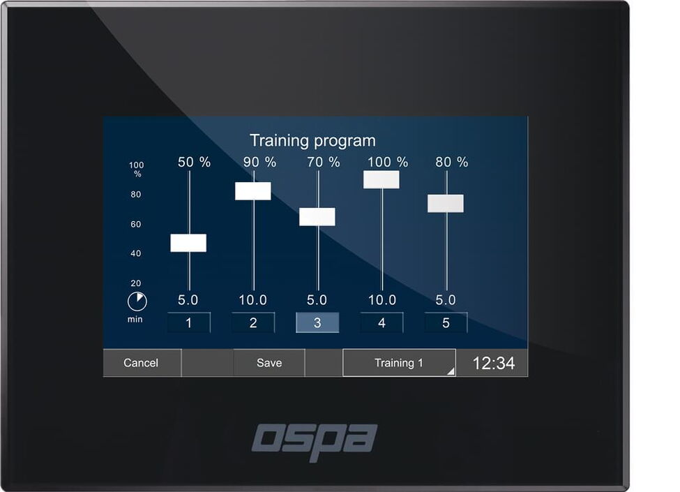 With Ospa BlueControl®, the entire Ospa PowerSwim range allows you to create your personalised training plan. Save up to 6 individual training routines, each featuring 5 consecutive performance levels that can be tailored in strength and duration.