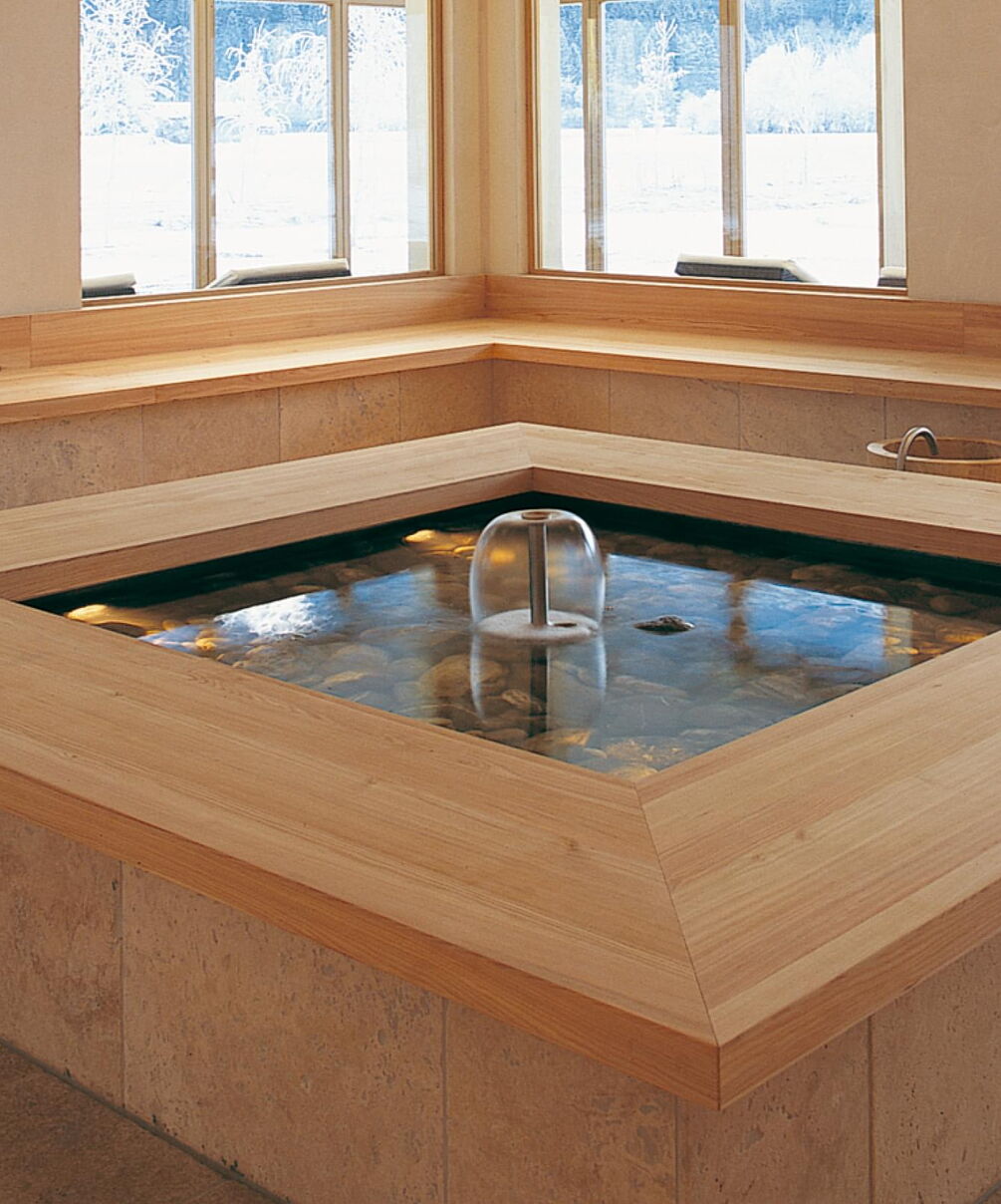 For everyone who loves moving water and floating on water jets. Powerful water shoots upward out of a jet in the pool floor in a wide current and breaks over the surface like a wave.