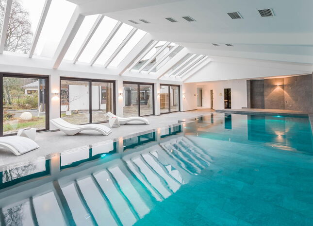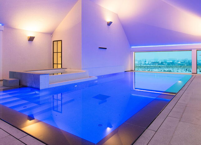 Fascinating indoor pools – we have designed and brought to life numerous ideas and dreams of our customers. Completed by flowing transitions, with light art or with elegant purism, indoor pools from Ospa are characterised by their intelligent technology.