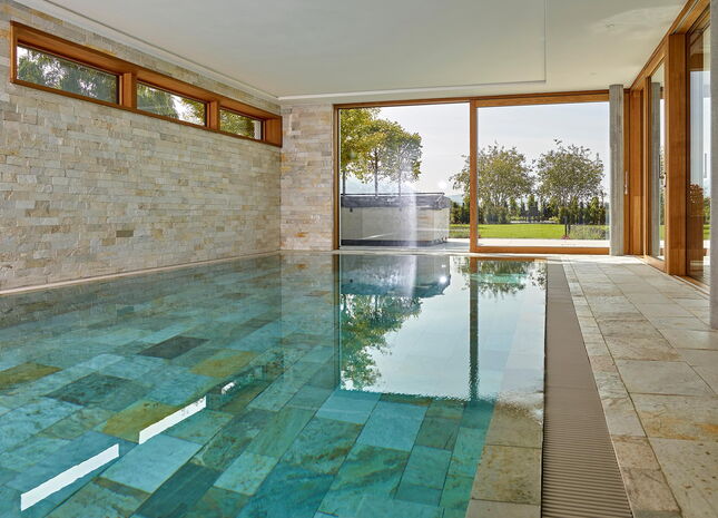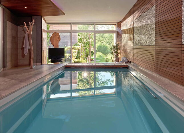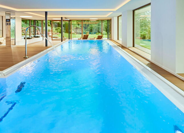 Indoor pools offer swimming enjoyment at the highest level, regardless of the season. Equipped with energy-saving control systems, light, water temperature, pool filters and all other functions are easily operated by touch screen using the Ospa BlueControl® system. An indoor pool is also brought to life by extensive water features, such as a counter-current system, which additionally increases swimming enjoyment in the pool. Be inspired and dive into the world of Ospa indoor pools.