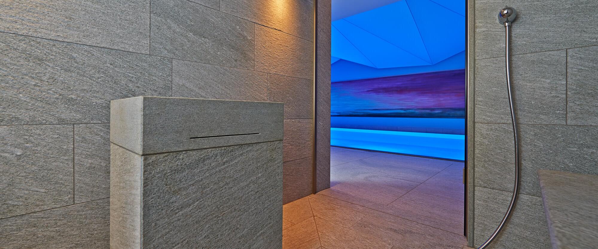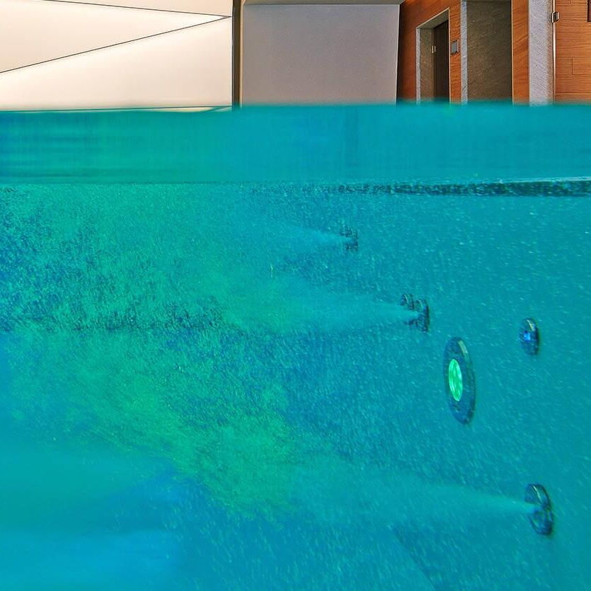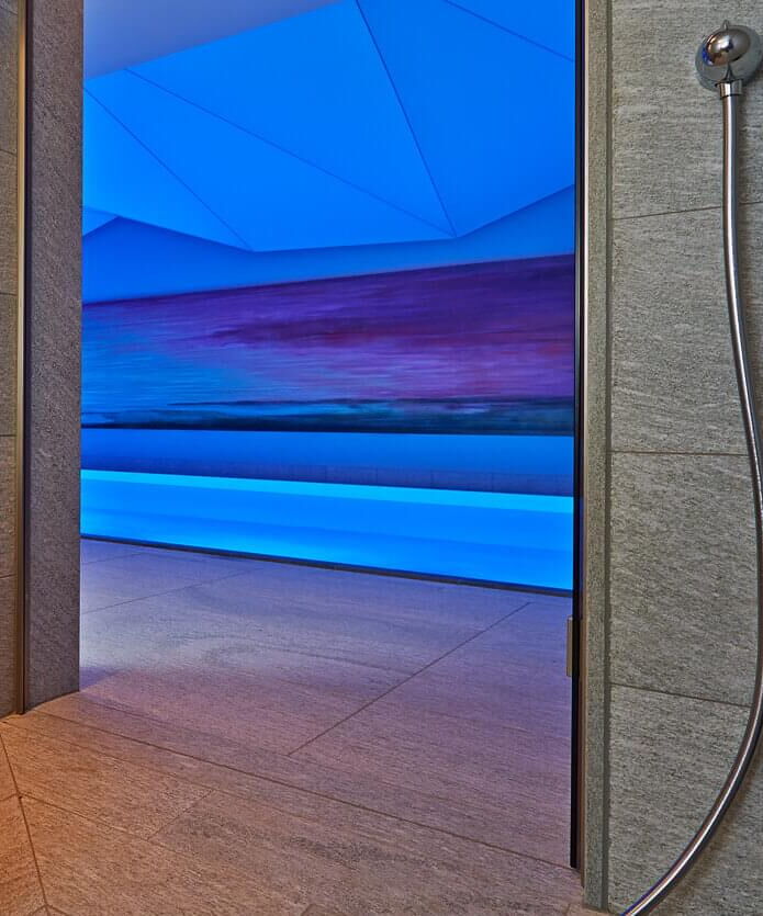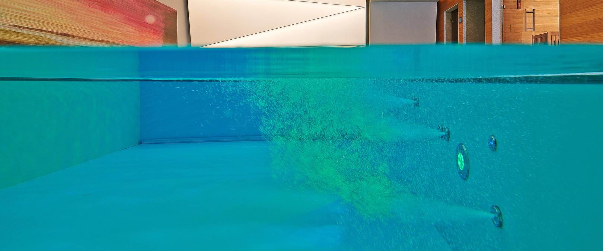 Thanks to the Ospa PowerSwim 3 counter-current system, the spectacular ceiling can be extensively admired while working out with a backstroke. In the technology room, an energy efficient Ospa Filter EcoClean Super with active carbon layer and automatic backwashing and a fully automatic Ospa BlueClear® reliably provide the pool with spring-fresh, skin and eye-friendly healthy water. The system is controlled via Ospa BlueControl III Web, which can not only monitor all water parameters fully automatically, but can also conveniently control all features via tablet or smartphone - top class operating convenience.