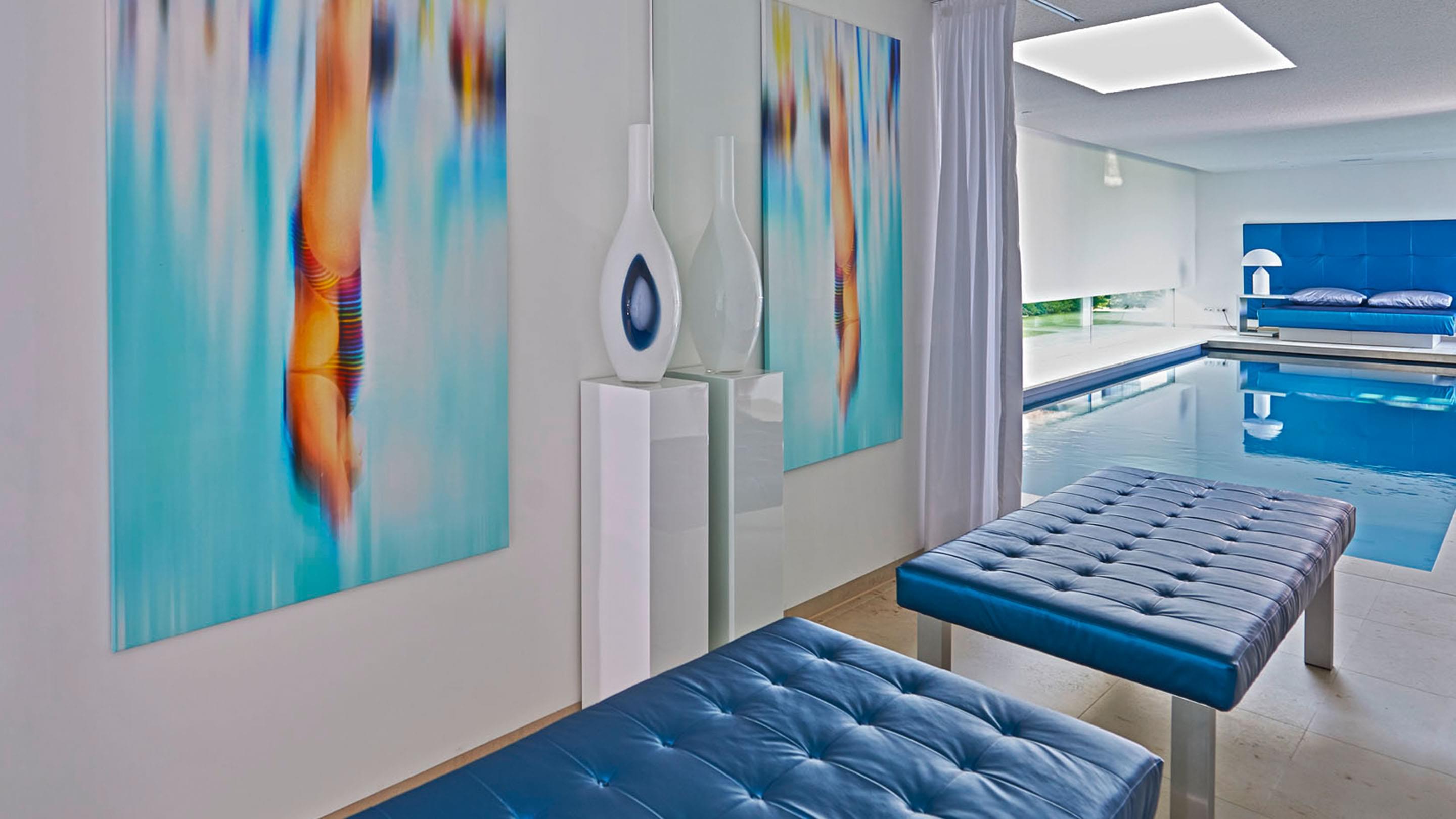 So that athletic water lovers could be entirely in their element, spring-fresh water without swimming pool odour was prioritised. The powerful heart of the system is an automatic water treatment system, consisting of an Ospa Filter 16 Super with active carbon filtration and an Ospa BlueClear®. The water quality is reliably monitored and controlled by an Ospa BlueControl® III Web. The lighting effects are controlled by DMX lighting technology, and can be accessed via smartphone.
