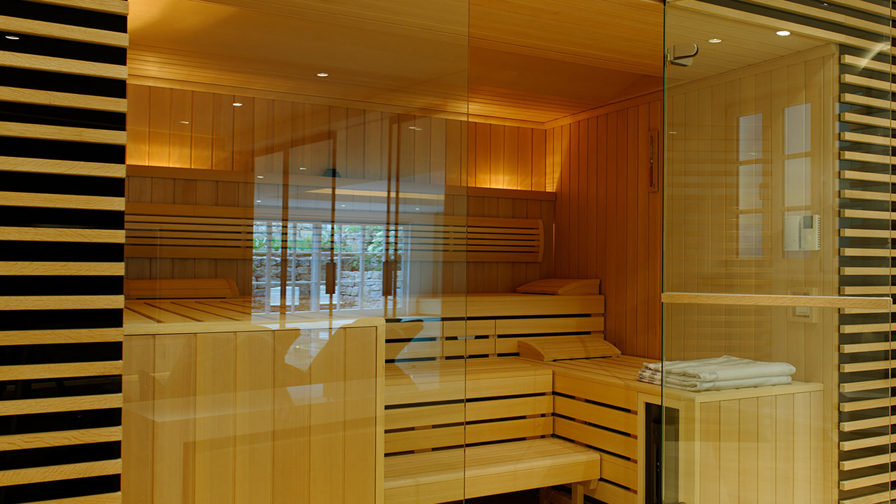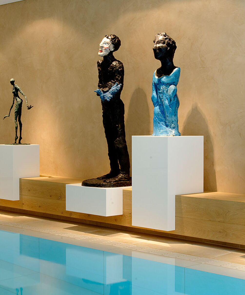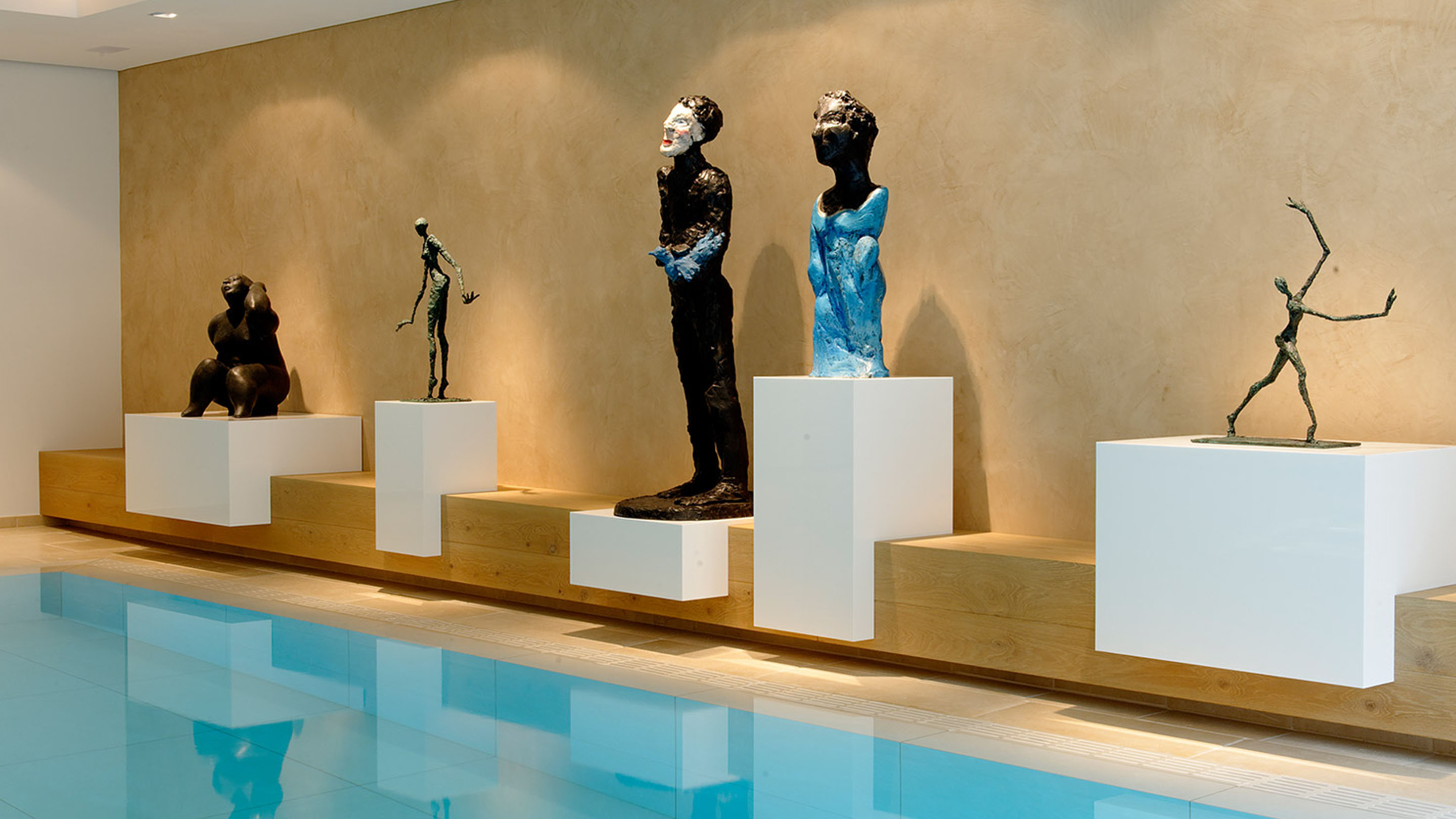Modern art pieces are presented at the end of the pool, arranged on blocks. In this sublime atmosphere, there is no art to relaxing. On the contrary: perfect Ospa healthy water, effective evening lighting, a sauna and a relaxation room with TV allow hectic daily life to be forgotten in no time.