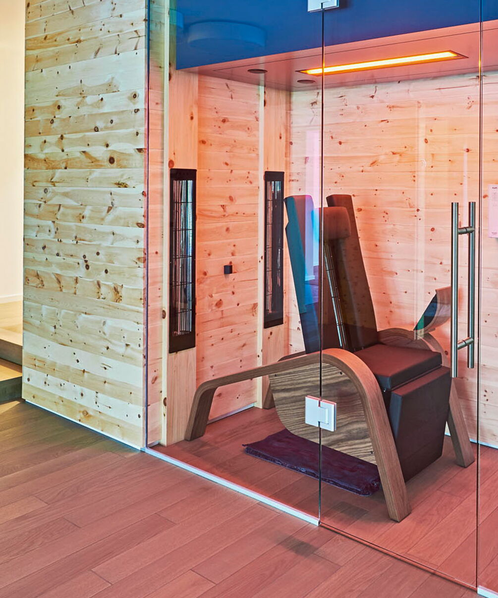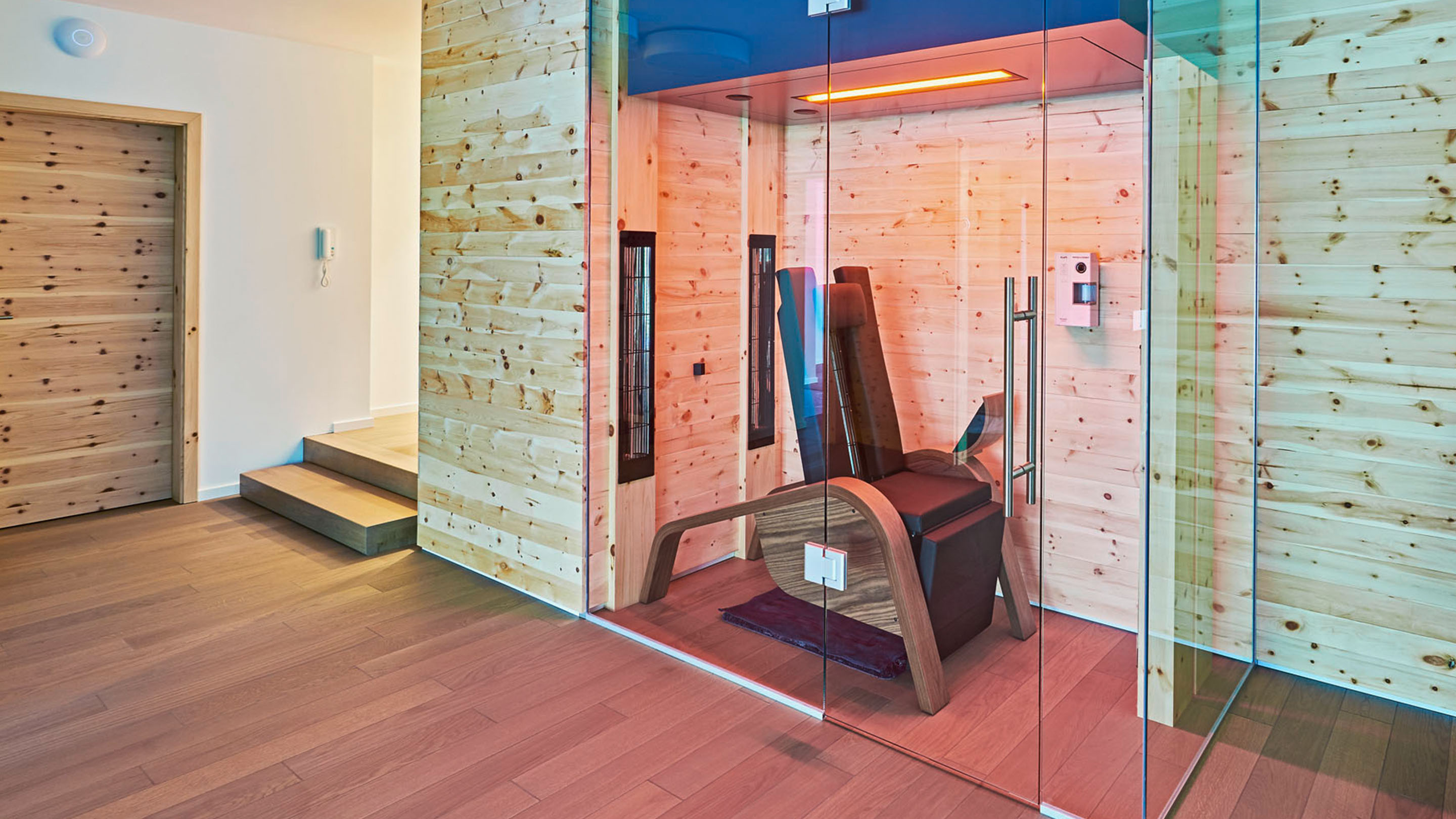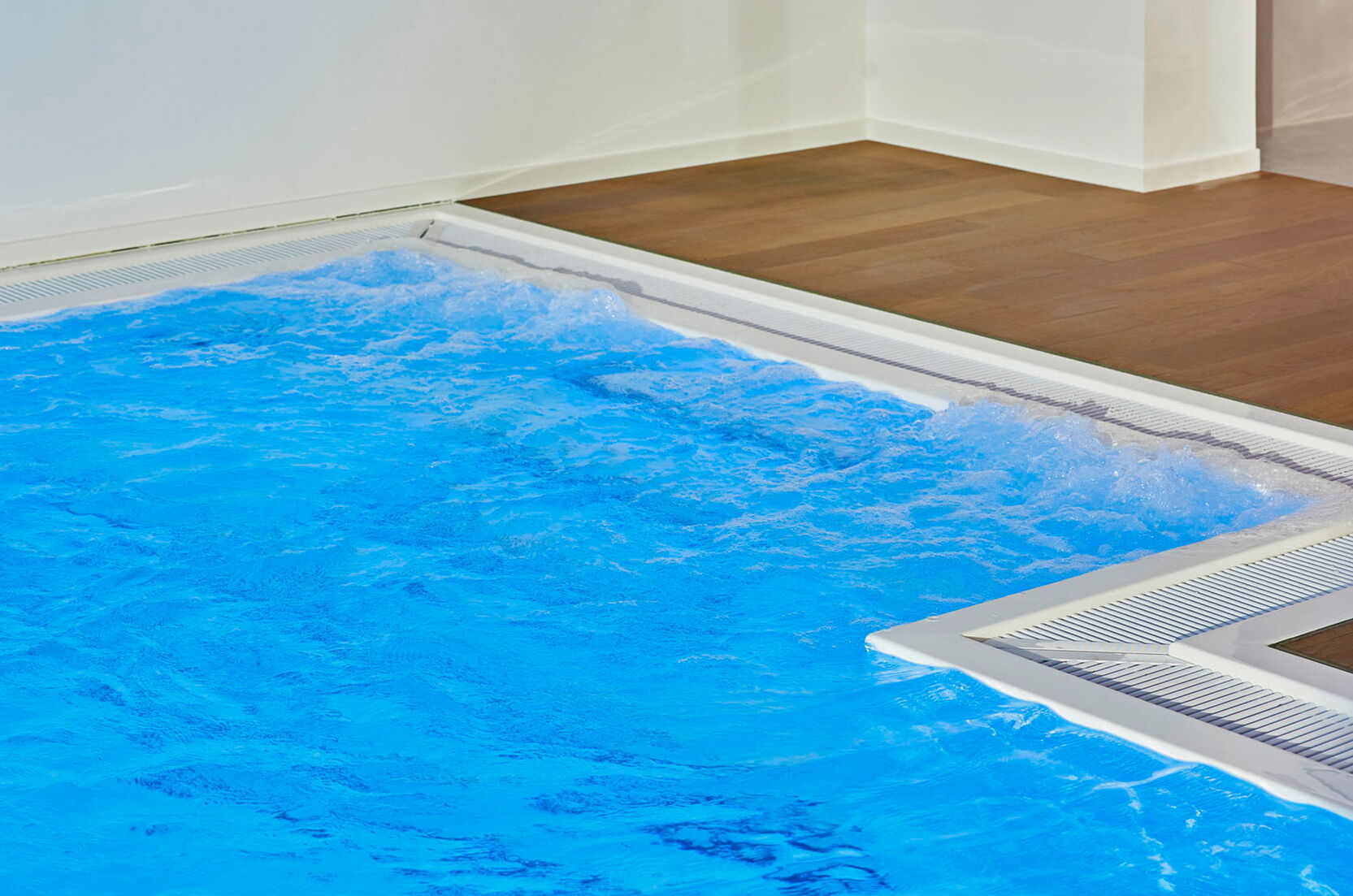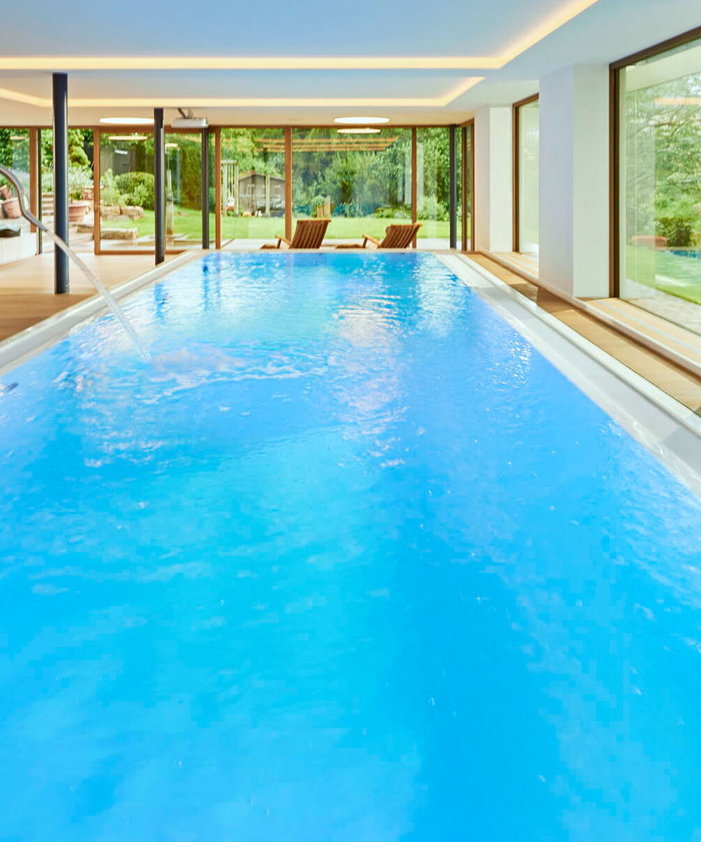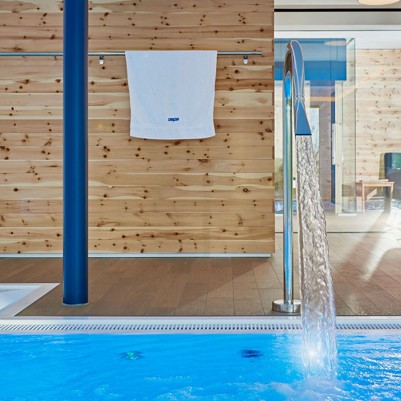 This wellness oasis for body and spirit not only serves for relaxation; the elongated pool is also inviting for athletic swimming.
