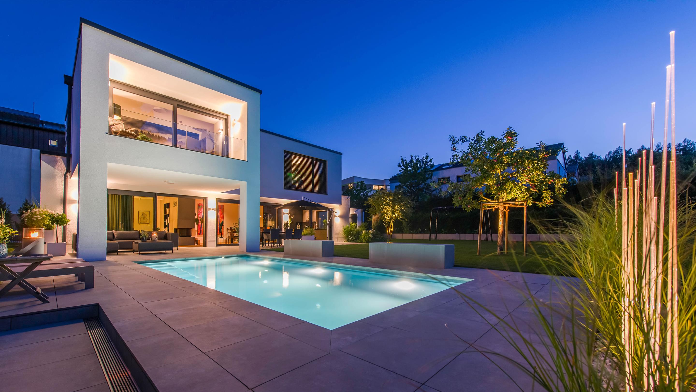 Dive into fantastic and wonderfully coloured swimming pool water and experience moments of very special atmosphere while you glide through the premium pool water in your perfect swimming pool. In the darkness and twilight, it's "Lights off, spotlight on."