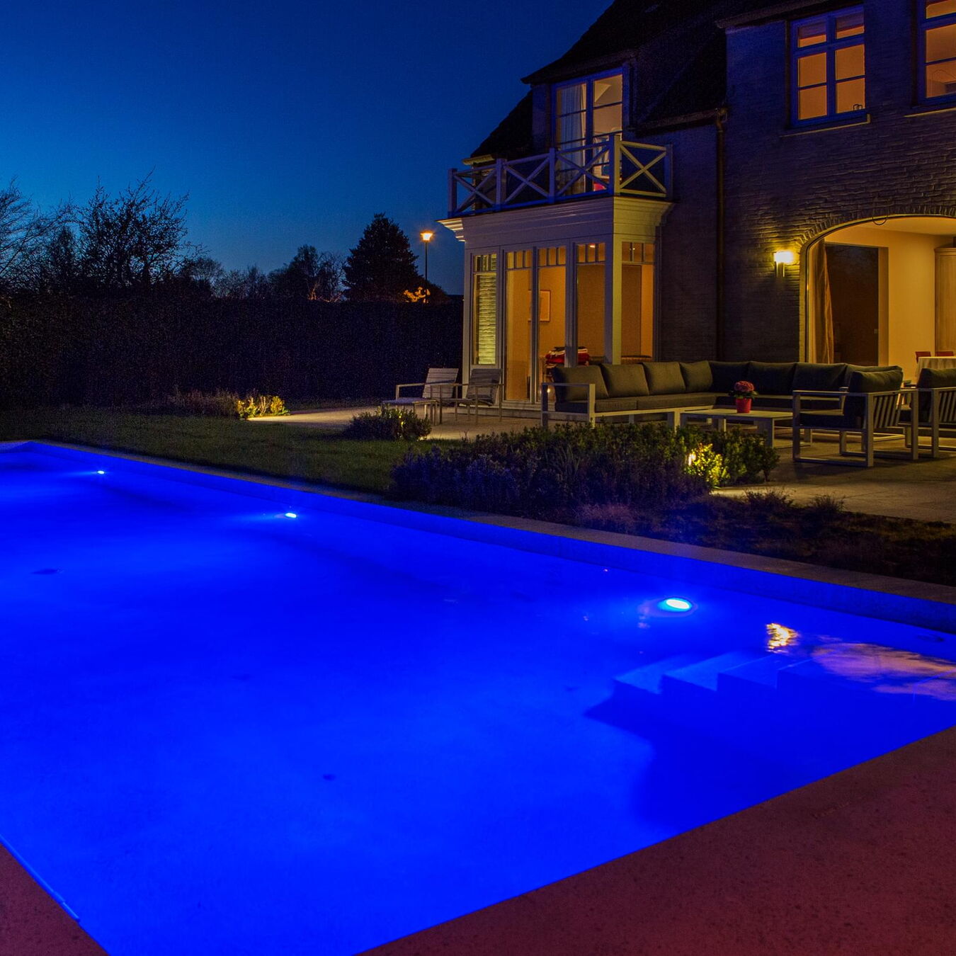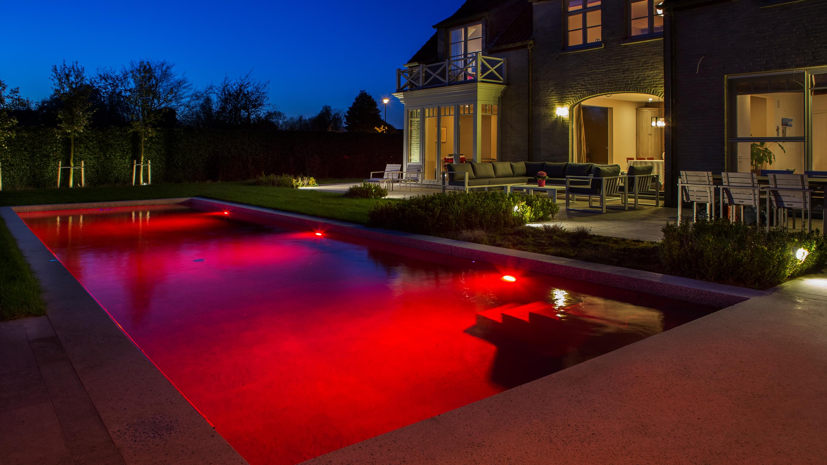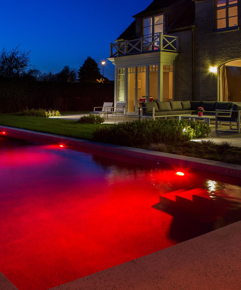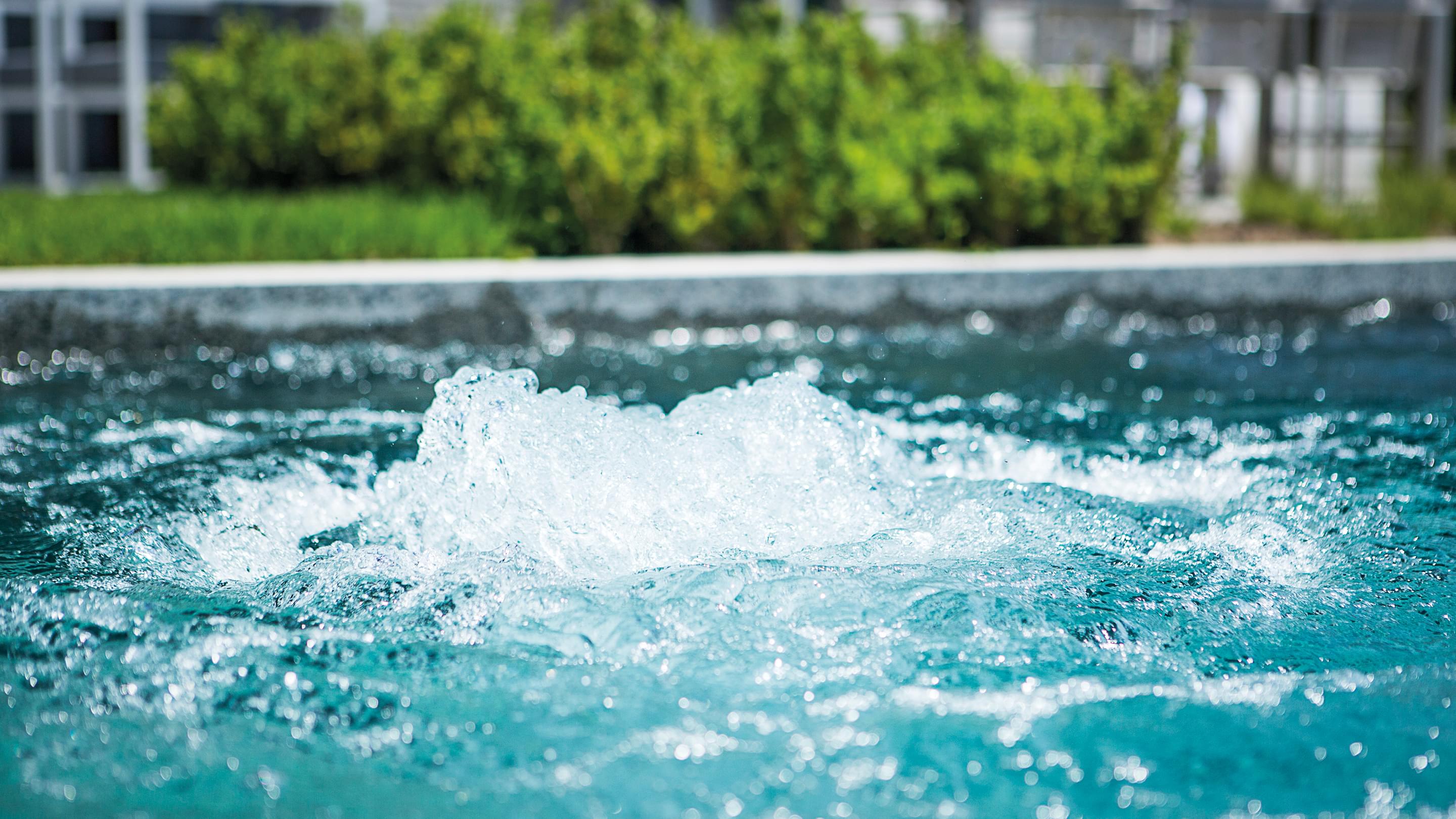 In the centre of the pool, an Ospa Wild Spring recessed in the floor beckons. The pool edges, simulating granular terrazzo, are also full of the latest technology: a counter-current system challenges athletic swimmers at the end. Four vertically arranged jets of an Ospa hydromassage 4 provide pleasant back sensations. And, at night, three Ospa LED RGB+white underwater spotlights provide atmospheric colour effects.