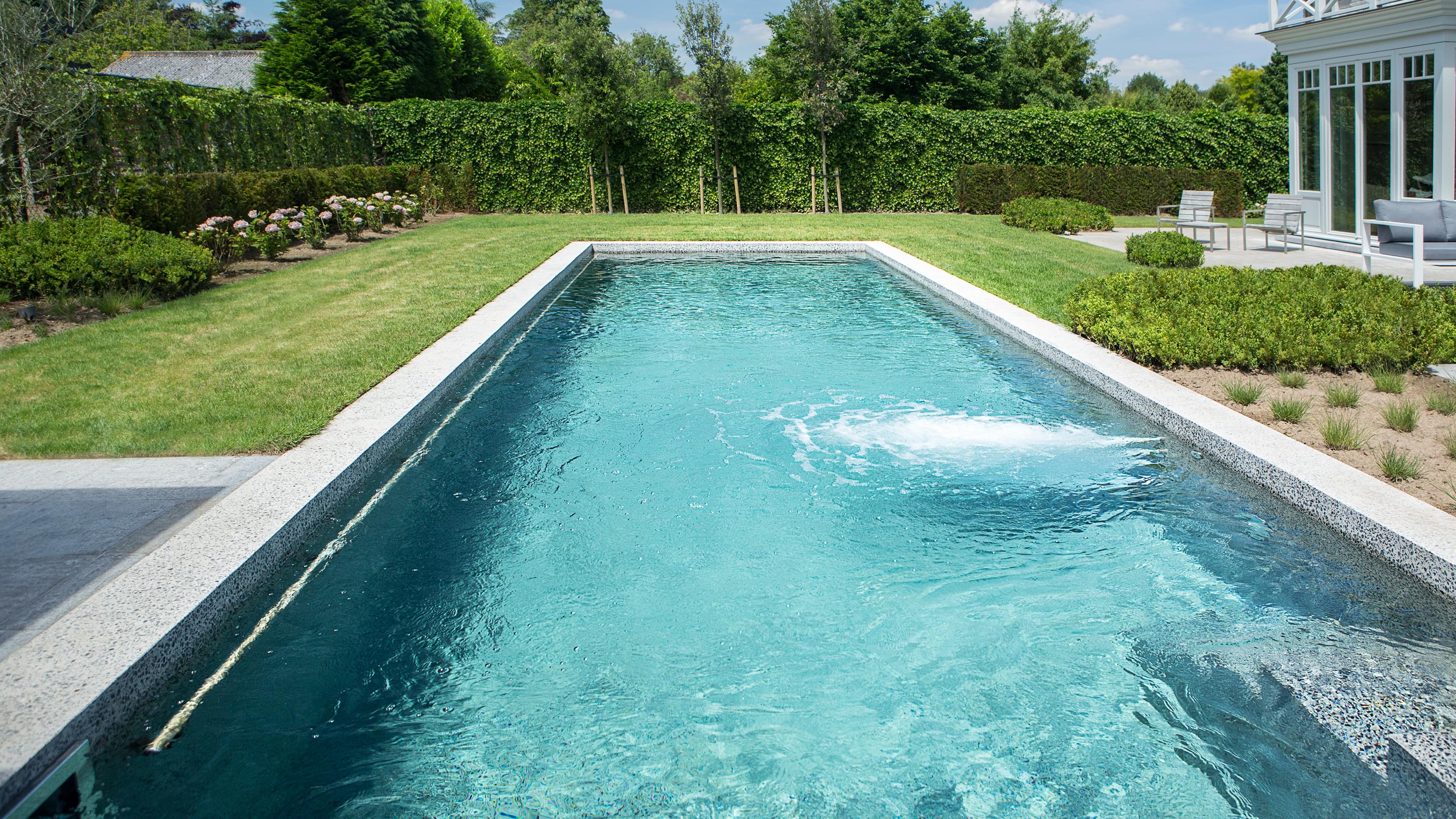 At first glance, the 12m outdoor exposed concrete pool appears decidedly utilitarian. Upon closer examination, however, it proves to be a versatile piece of paradise.