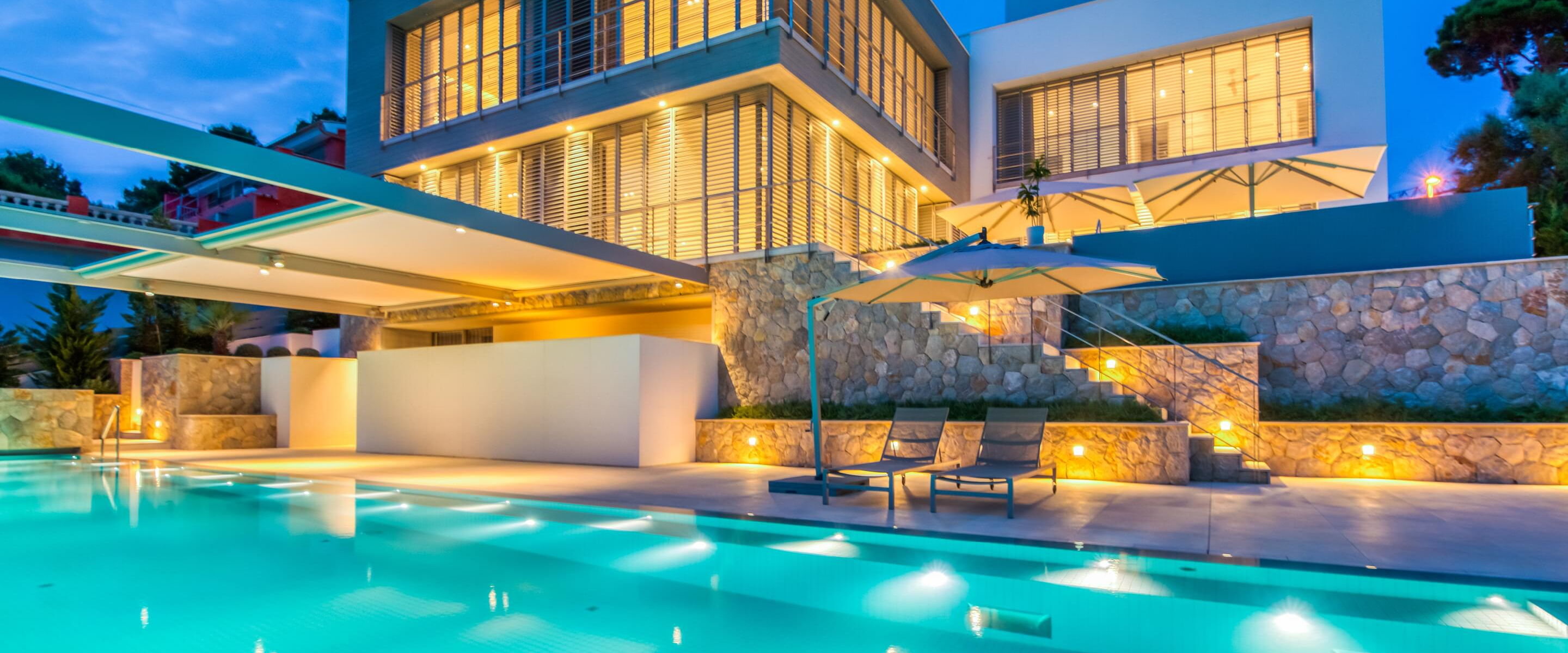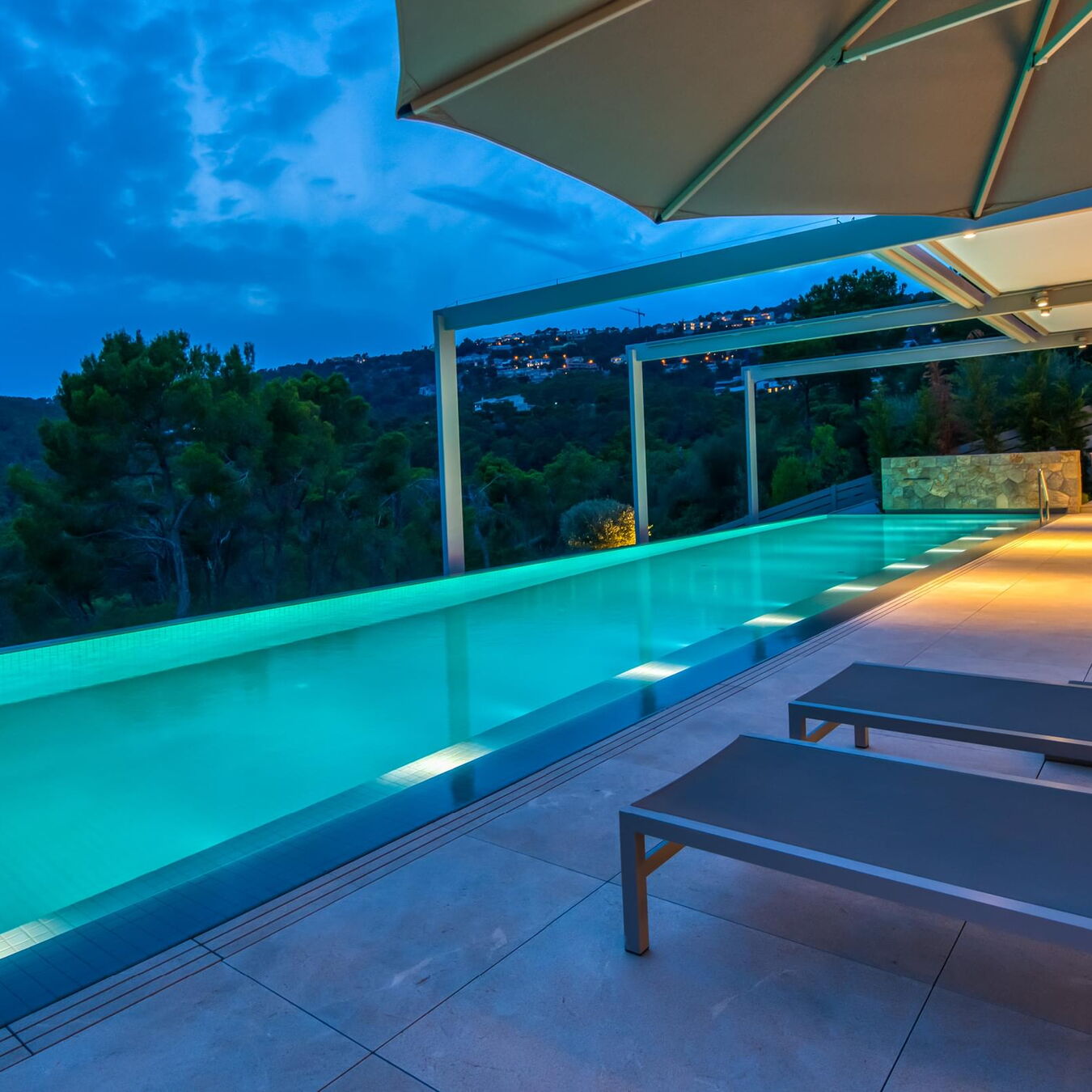 Water roars powerfully into the depths. The impressive effect of the Ospa waterfall is further increased by atmospheric lighting, becoming an exclusive water feature in the evening hours.