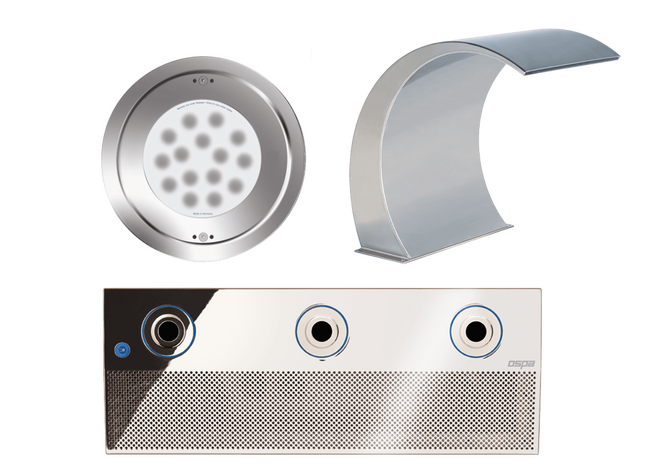 In the features & lighting category, we present our diverse water features. Whether it’s a waterfall, neck cascade, hydromassage, or air bubble lounger, Ospa’s various products stand out for their high quality and durability. With our extensive selection of LED-RGB underwater lighting, you can create the right ambiance for different occasions.