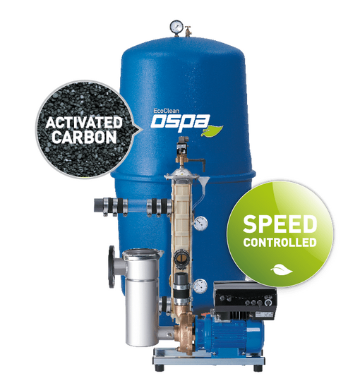 The robust Ospa polyester filter tanks are constructed from multilayered hand-laminates using highly chemical-resistant resins and certified by KSW.