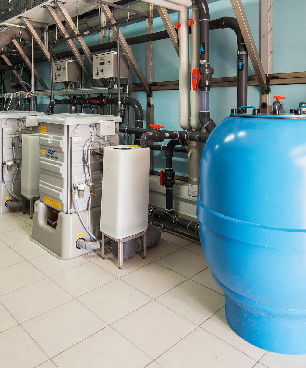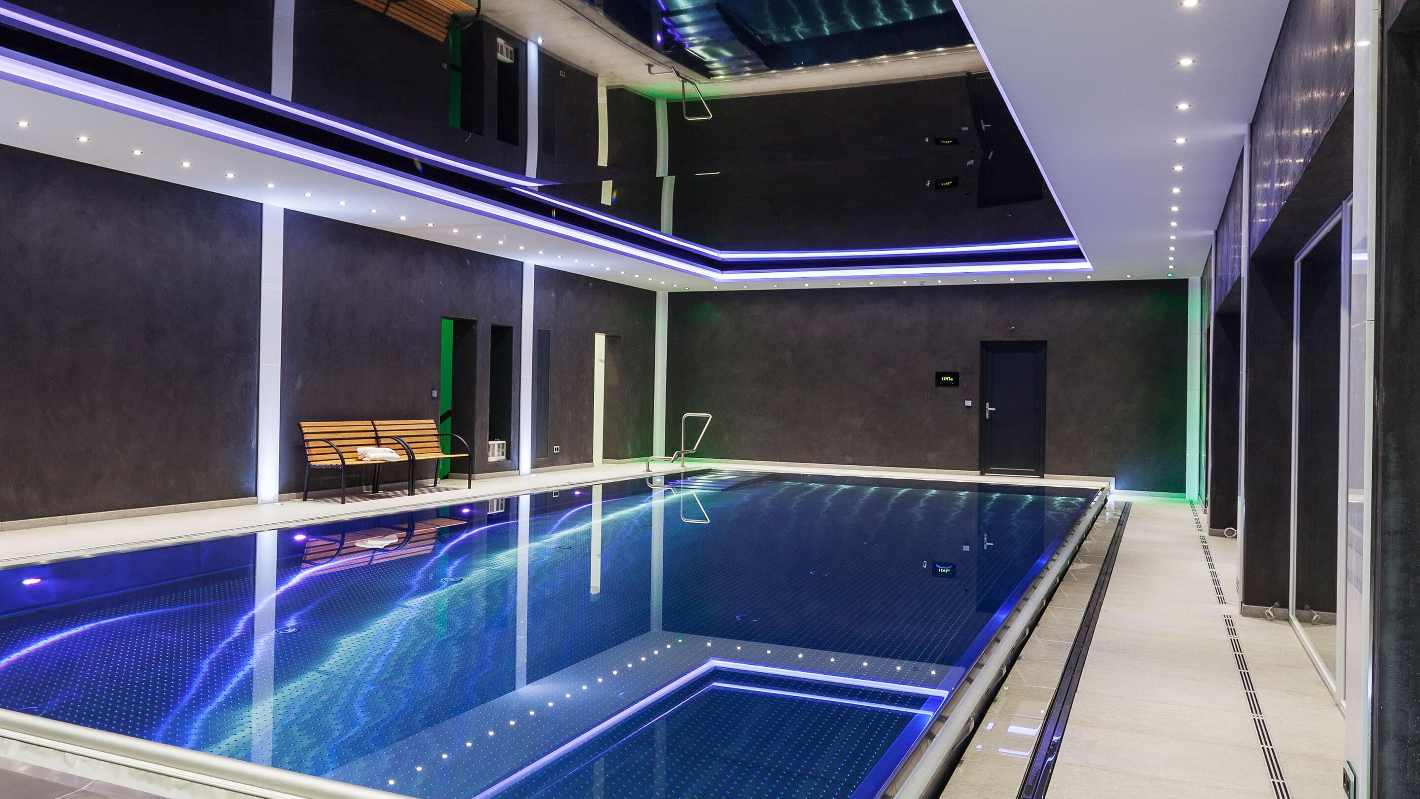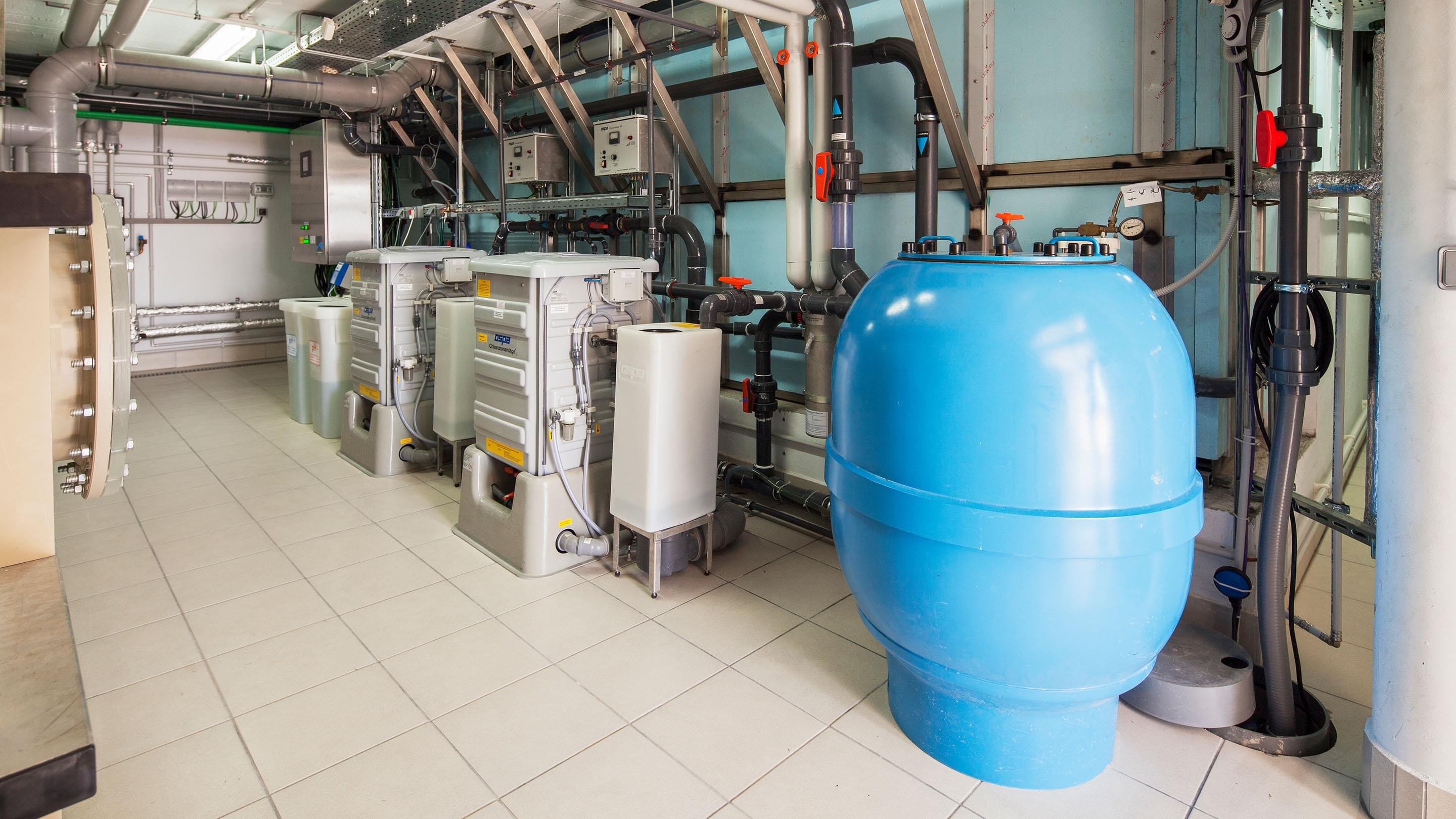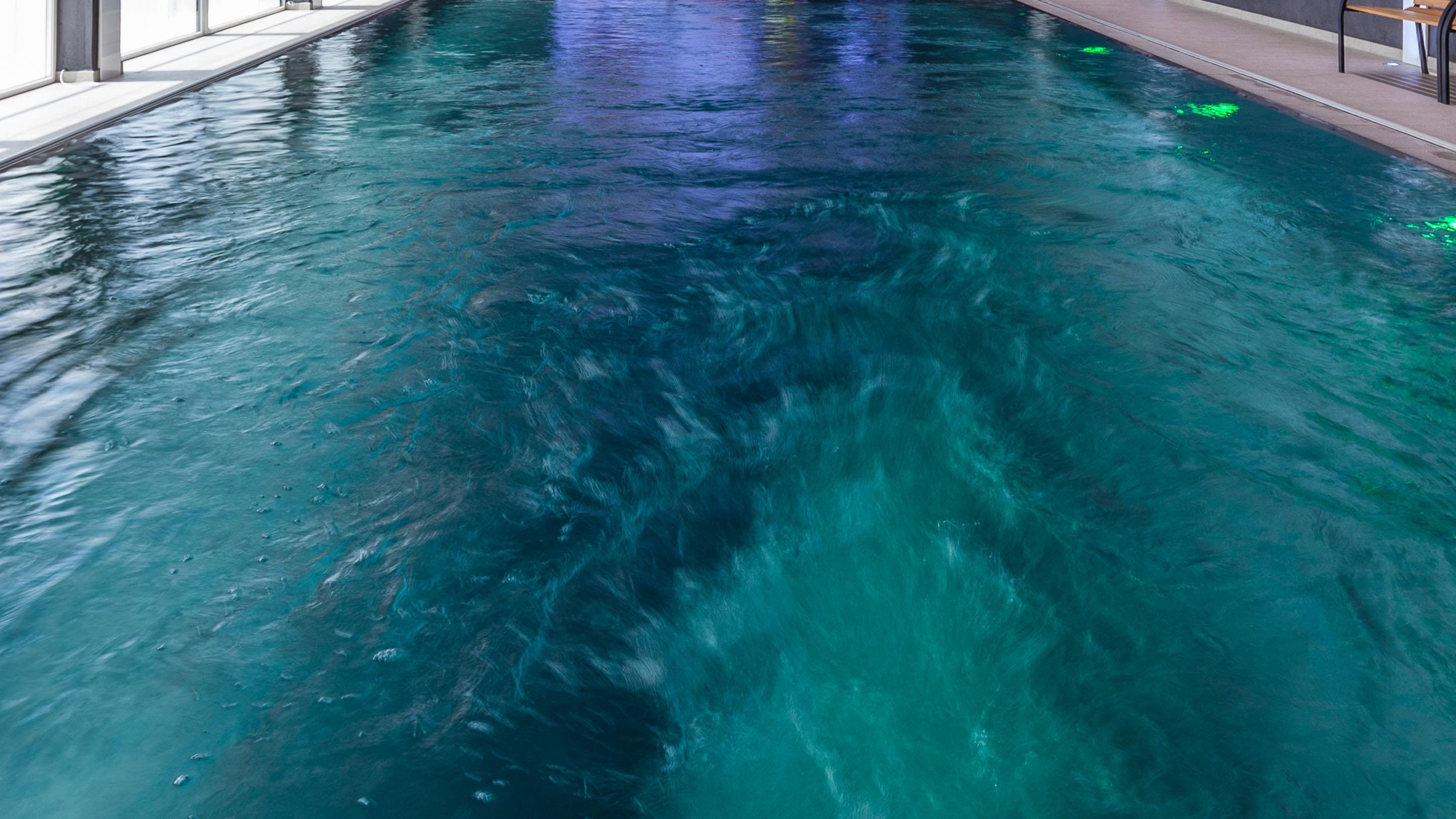 Dankzij het tegenstroomsysteem en het massagesysteem is het zwembad zowel geschikt voor zwemtraining als om te ontspannen. Om ervoor te zorgen dat de waterkwaliteit altijd in orde is, hebben de bouwers gekozen voor Ospa-waterbehandeling. De combinatie van Ospa-zandfilter, BlueClear®-waterdesinfectie en BlueControl®-besturing voor gegarandeerd zuiver, geurloos en huid- en oogvriendelijk weldadig water. De techniek wordt bediend via een touchscreen, waarmee niet alleen alle componenten van het zwembad kunnen worden geregeld. Via het KNX-bussysteem is het hele Smart Home in de besturing geïntegreerd.