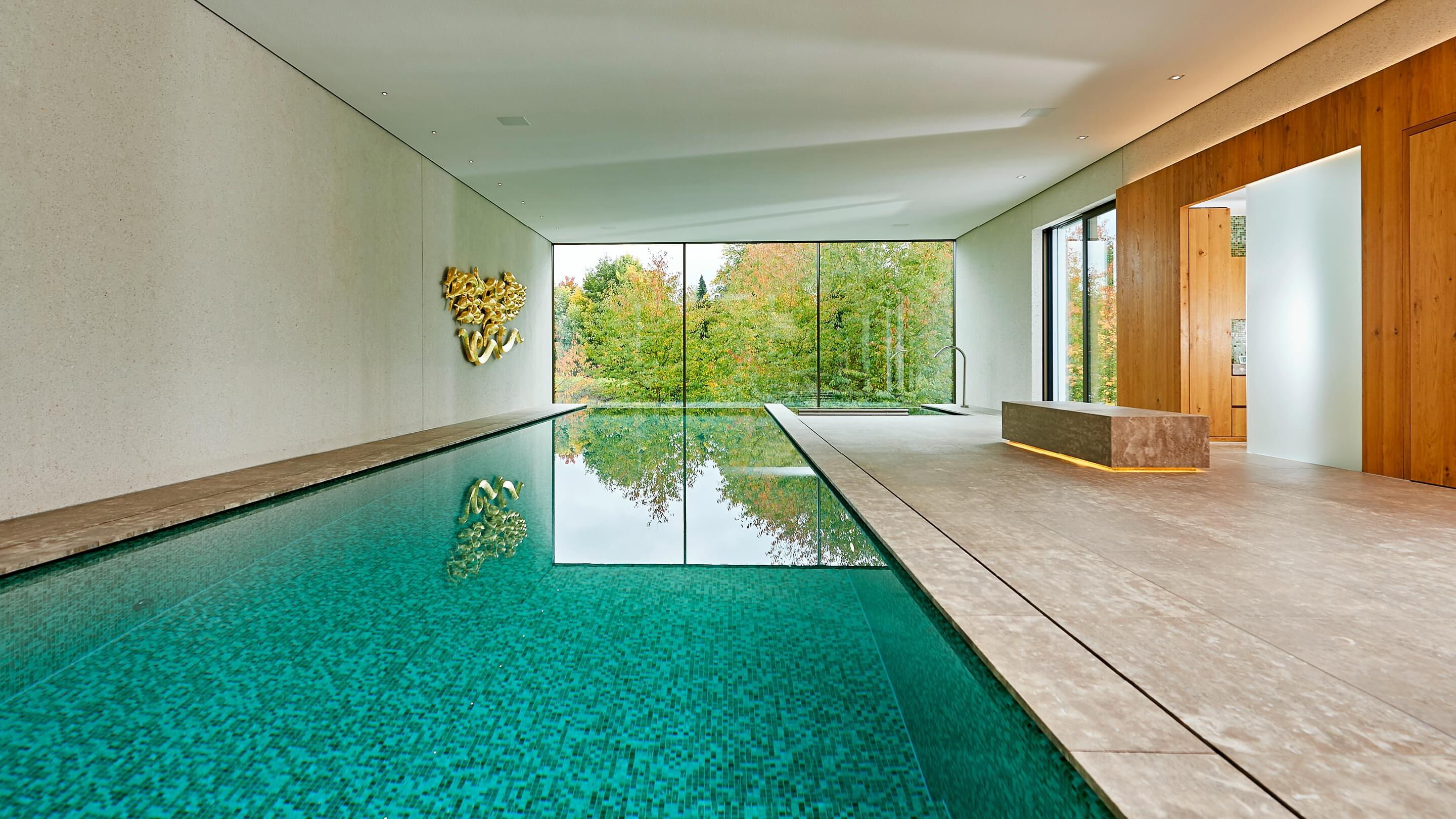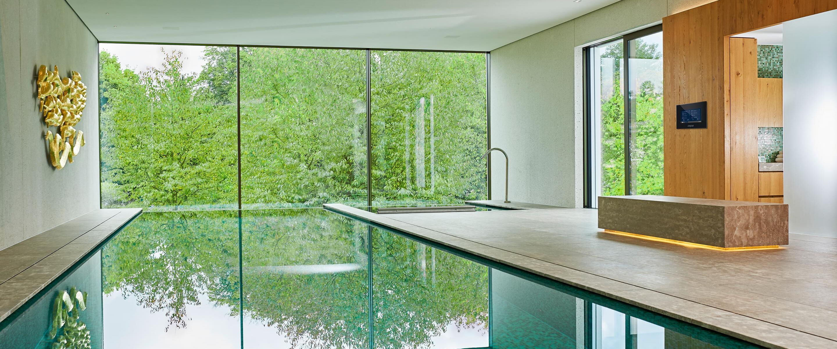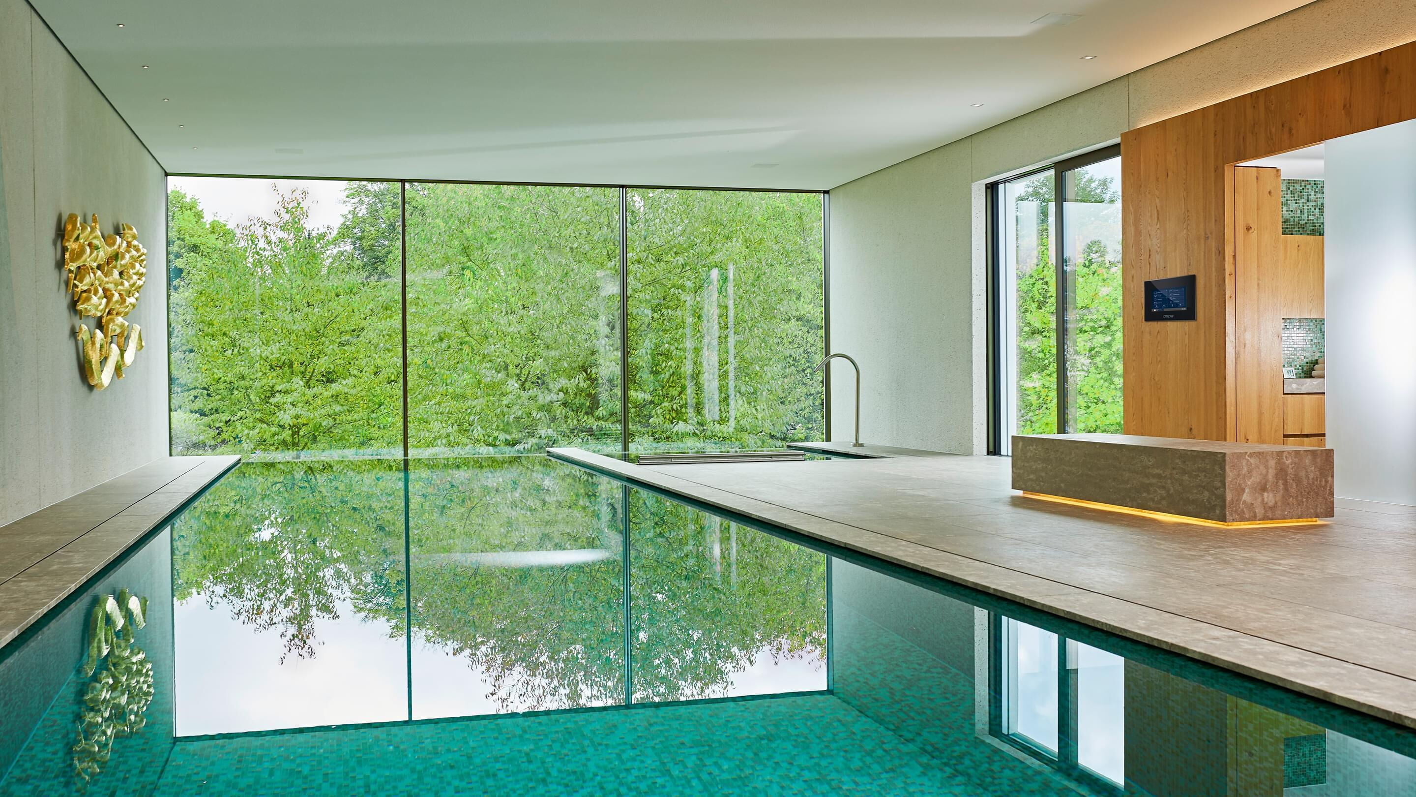 Beneden in de garage staat de oldtimerscollectie klaar voor het volgende ritje, boven laat de huiseigenaar zijn ziel bungelen in de infinity whirlpool: voor zijn hartstocht liet de bouwheer een royale aanbouw aan zijn eigen huis ontwerpen en realiseren. In het luxueus uitgeruste zwembad is genoeg ruimte voor een 15 meter lang zwembad, een aparte whirlpool en een belevenisdouche – uiteraard met de modernste Ospa-techniek!