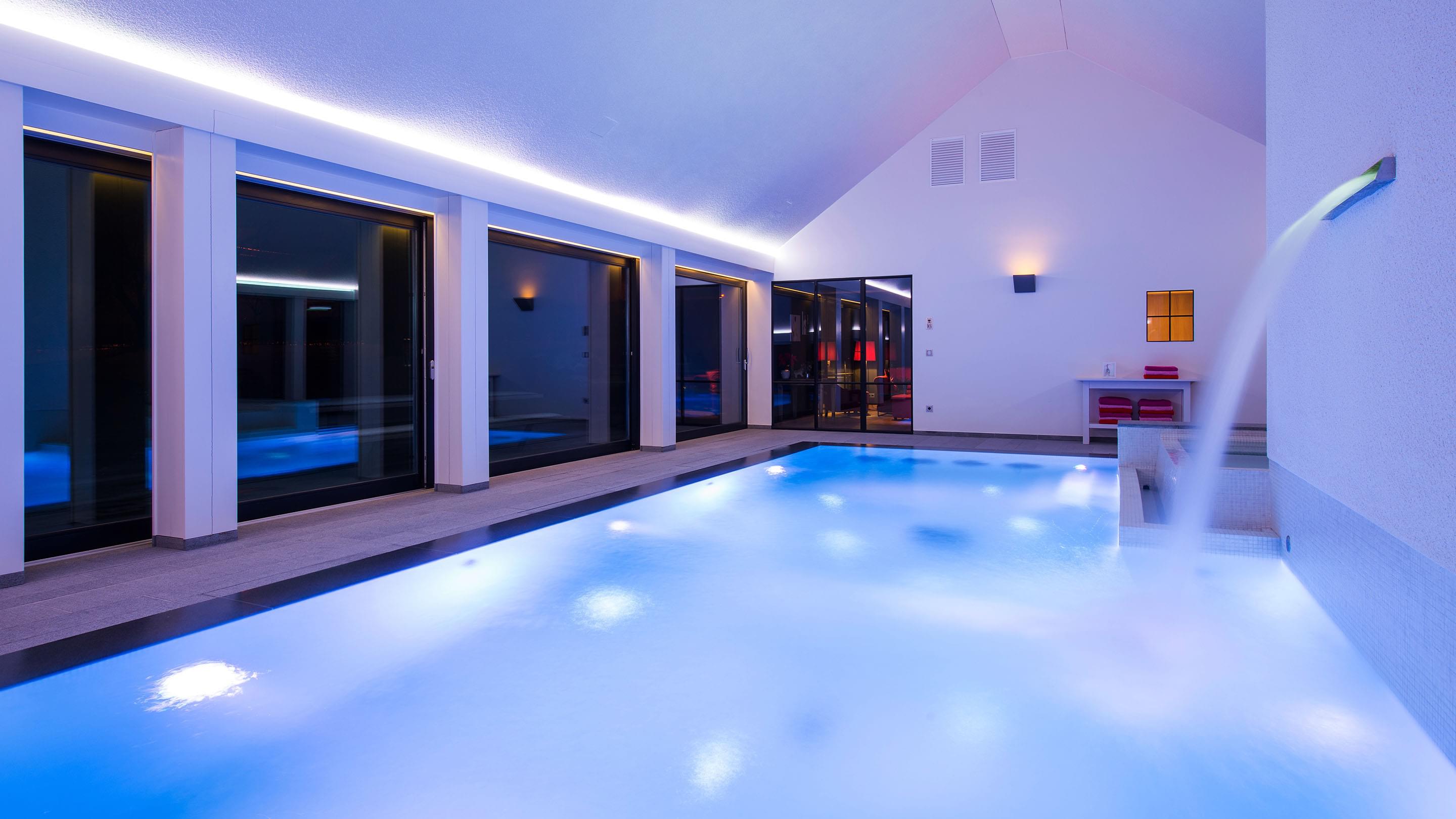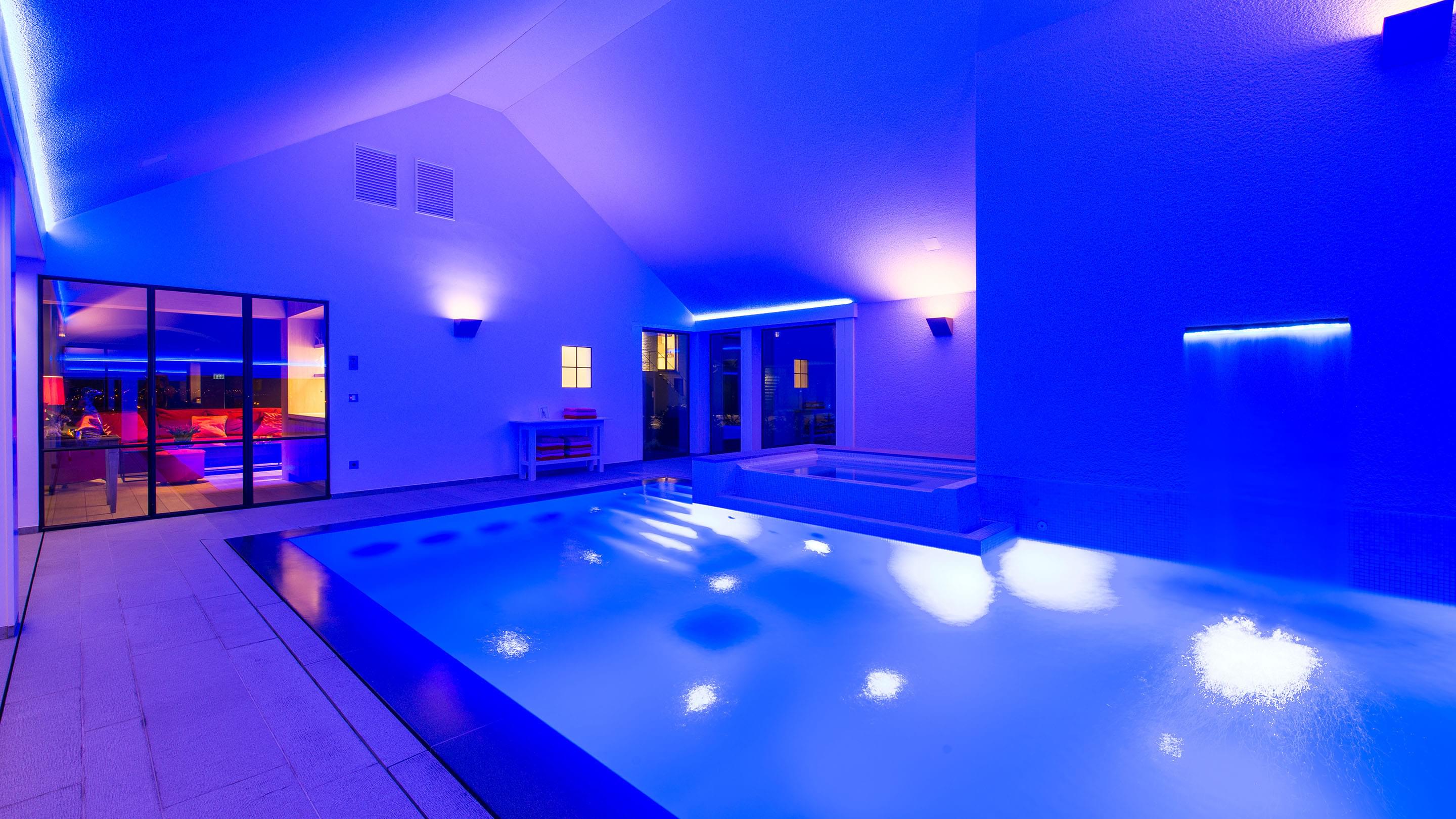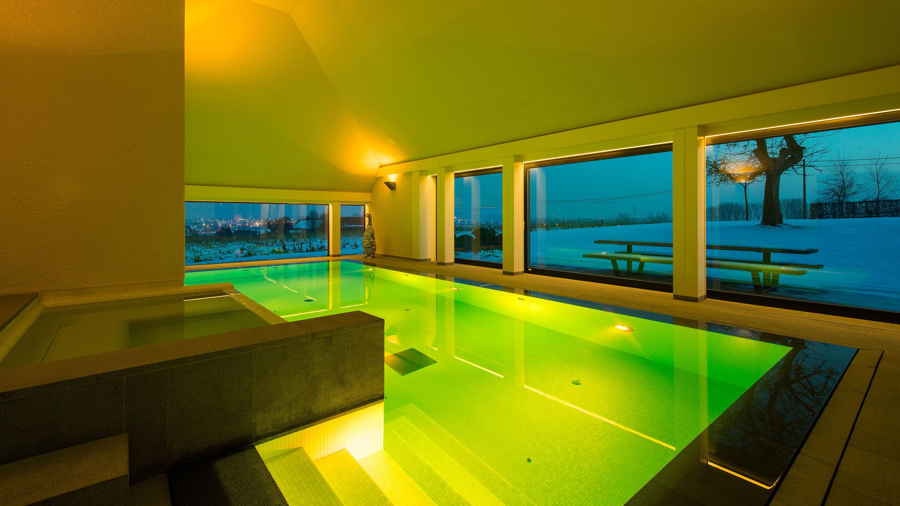 Duik in het fantasierijke en prachtig gekleurde zwembadwater en beleef bijzondere momenten terwijl u door het weldadige water in uw perfecte zwembad glijdt. Bij duisternis en schemering geldt dan: “Lichten uit, spot aan”.