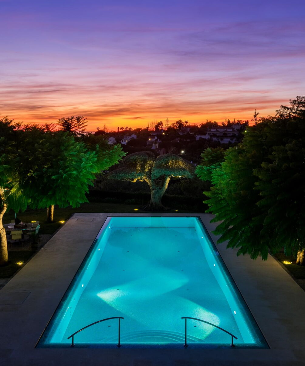 Duik in het fantasierijke en prachtig gekleurde zwembadwater en beleef bijzondere momenten terwijl u door het weldadige water in uw perfecte zwembad glijdt. Bij duisternis en schemering geldt dan: “Lichten uit, spot aan”.