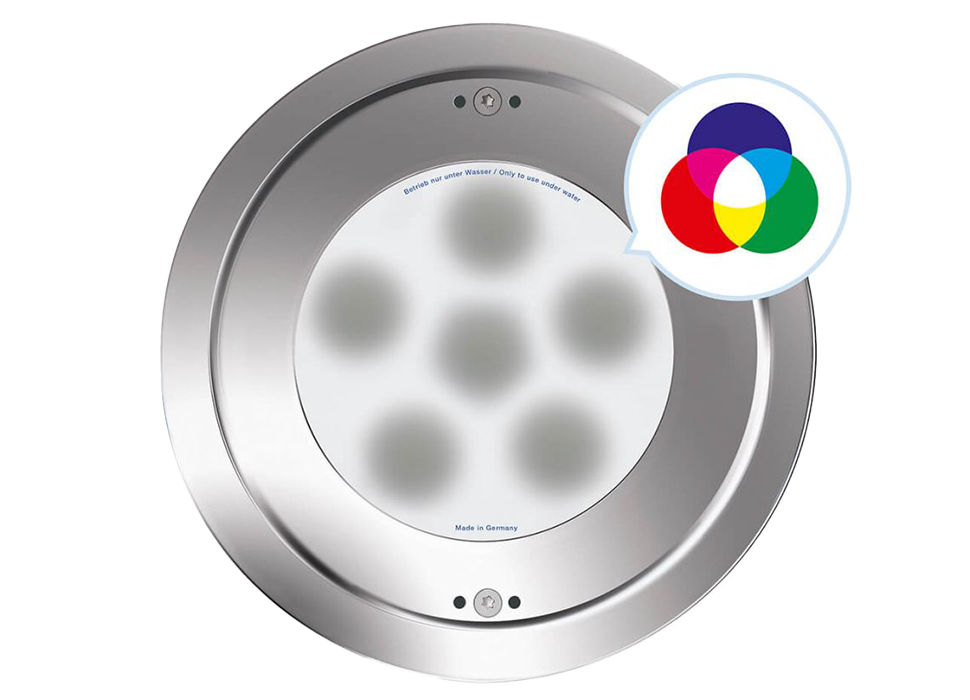 De nieuwe RGB-W onderwaterspot van de CX-serie is compact en krachtig. Met de Ospa DesignLine afdekking van gepolijst roestvrij staal ziet hij er bijzonder hoogwaardig en ingetogen uit. De besturing en stroomvoorziening gebeurt via DMX-compatibele Ospa netaansluitapparaten van de CX-serie. Met de Ospa BlueControl lichtregeling of de Ospa CC-module voor Ospa CompactControl kunnen bij RGB-W schijnwerpers lichteffecten en kleurwisselingen worden gecreëerd en opgeslagen.