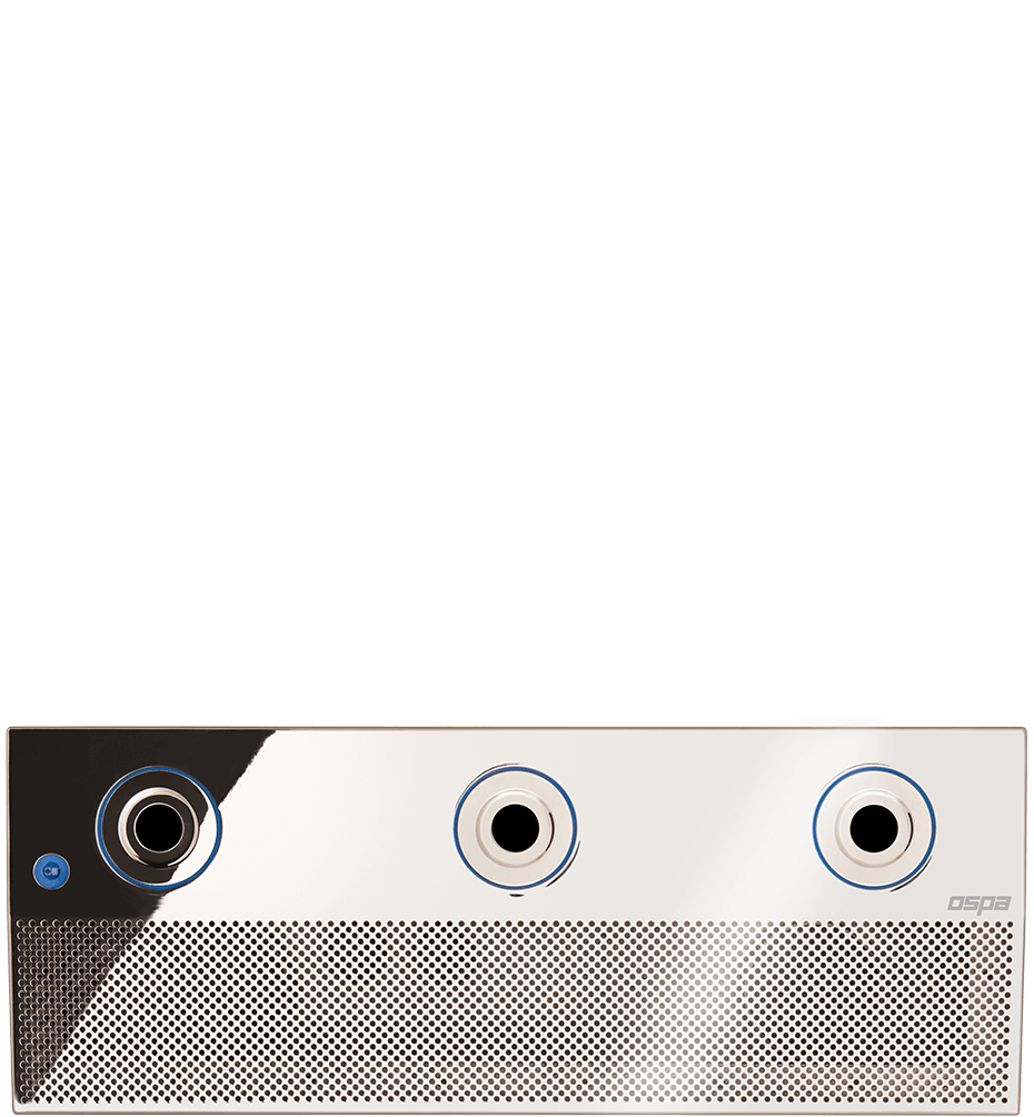3 jets, haarvrije aanzuiging en Ospa-sensorknop in een elegante behuizing met gepolijste roestvrijstalen afdekking. Snelle en eenvoudige installatie. Geschikt voor alle soorten zwembaden.