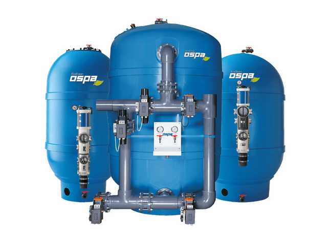 Ospa actieve kool- en kwartszandfilters, zeer efficiënt, energiezuinig en volautomatisch.