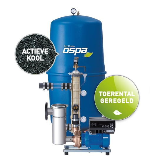 De Ospa diffusortechnologie maakt het spoelen van het filter grondiger. Toch wordt er geen materiaal geloosd, zelfs niet bij een spoelsnelheid van 50 m/u. Het filtermateriaal bestaat uit adsorberende actieve kool, filterkwartszand en drie getrapte steunlagen van filterkwartsgrind.