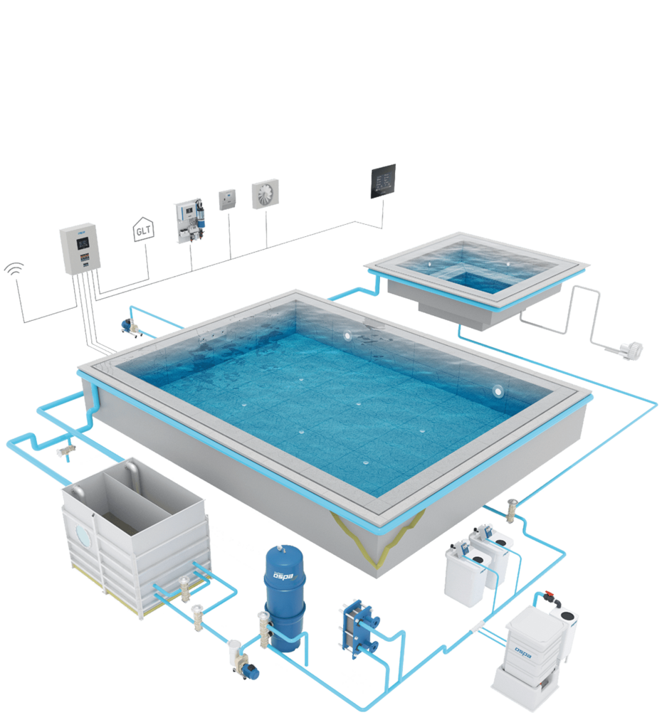 De waterbehandelingsinstallaties van Ospa werken energiezuinig en milieuvriendelijk. Een behoefteafhankelijke regeling vermindert het energieverbruik wanneer de installatie niet nodig is. Bovendien kan door warmteterugwinning energie uit de whirlpools worden gebruikt voor het verwarmen van de whirlpools.