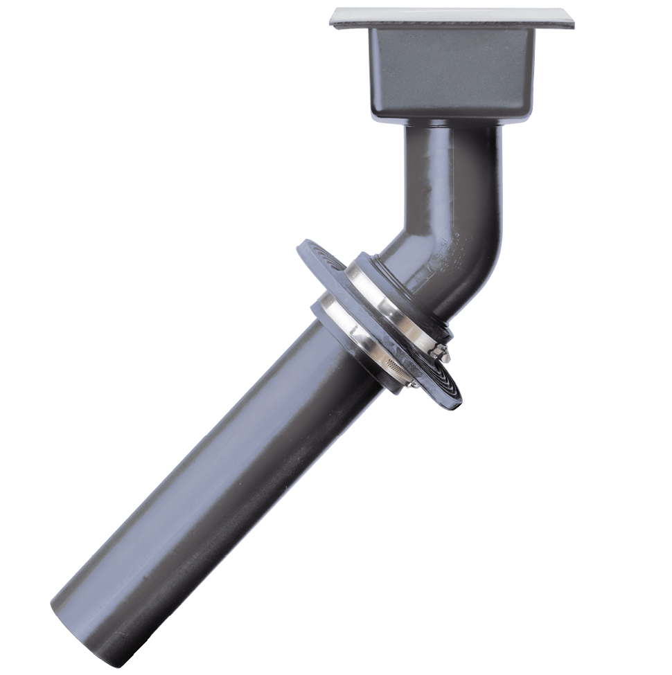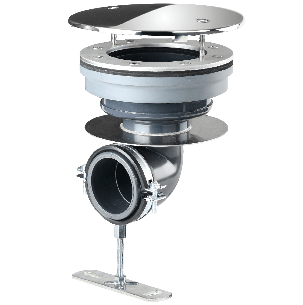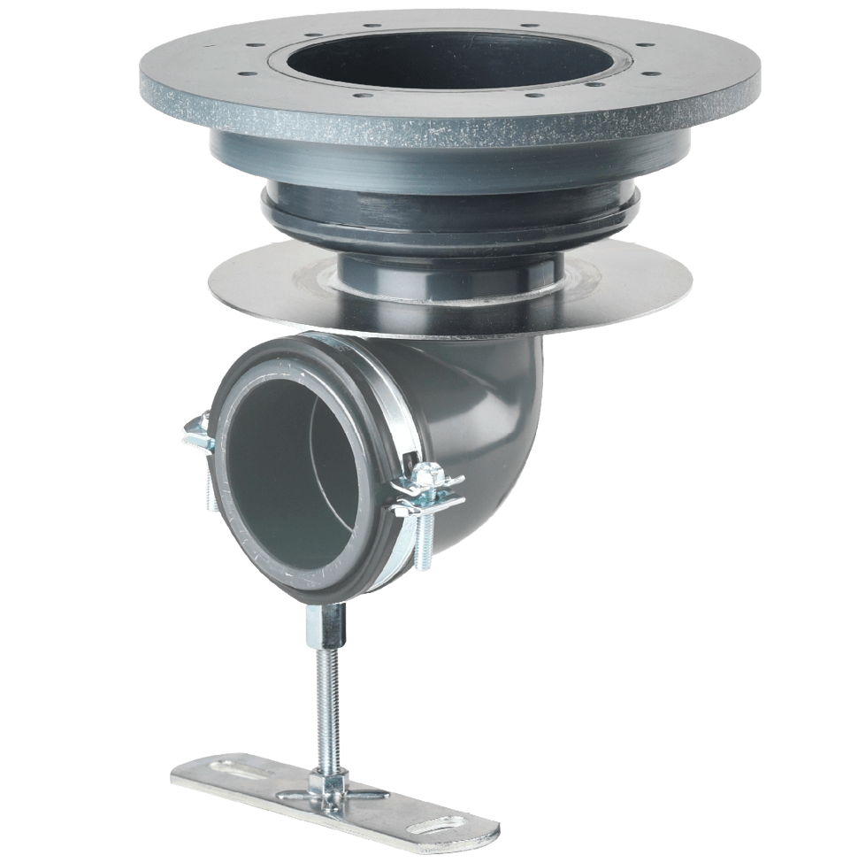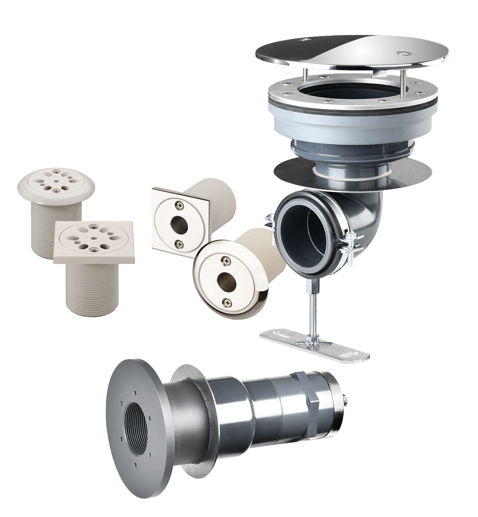 Voor geprefabriceerde bassins met flensring en verzonken schroeven van V4A en EPDM-afdichtingen. Aan de bassinzijde voorzien van binnendraad Rp 2. Aansluiting lijmmof d 63/lijmnip d 75.