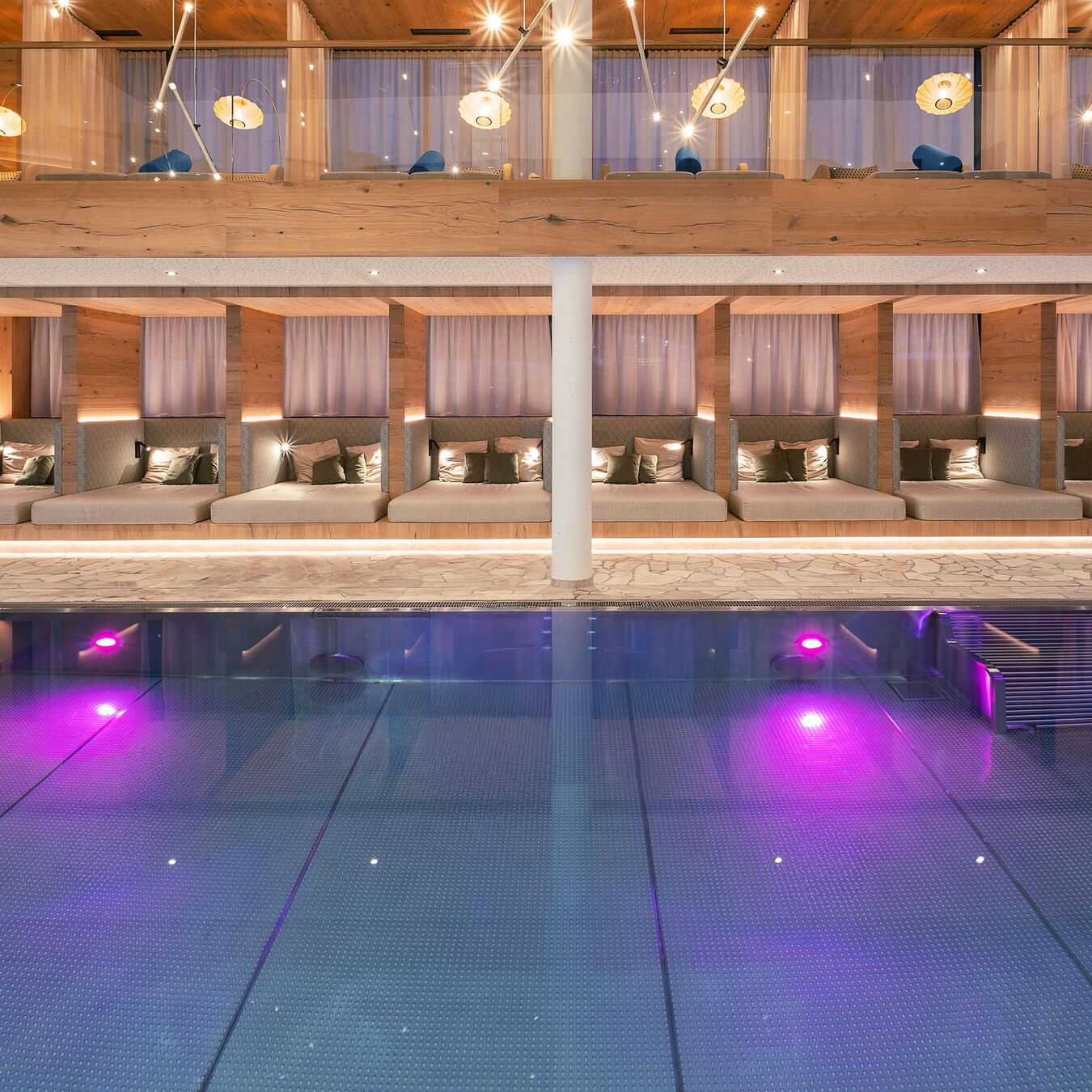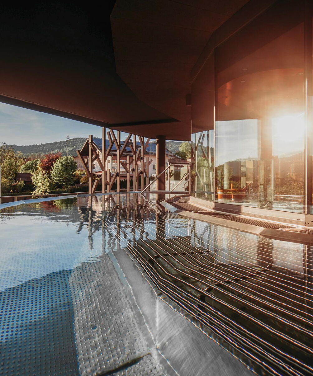 Voor iedereen die houdt van bewegend water en graag op waterstralen drijft. Uit een sproeier in de bodem van het bassin spuit krachtig water in een brede stroom omhoog en kolkt als golven over het oppervlak.